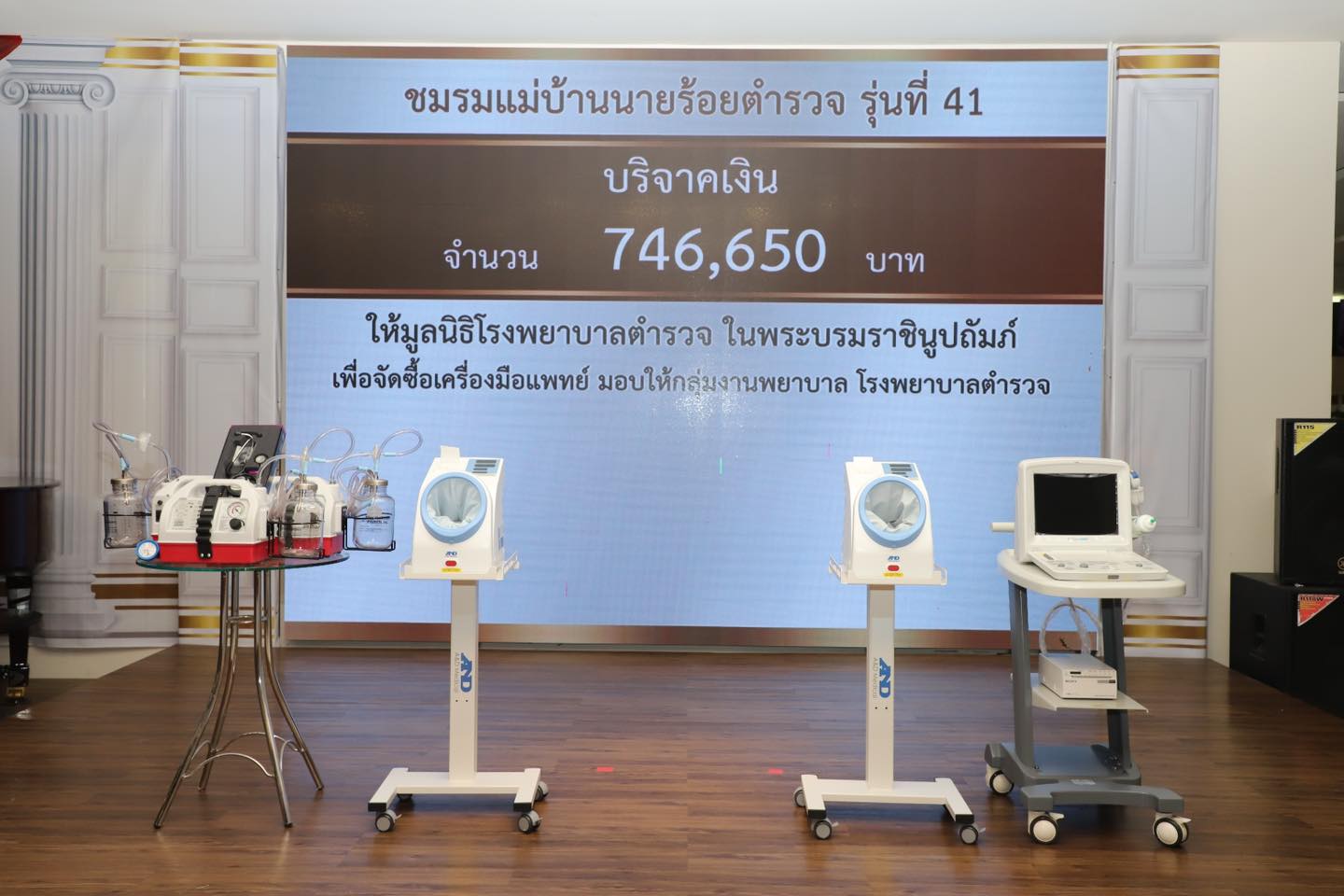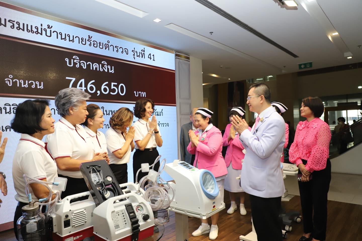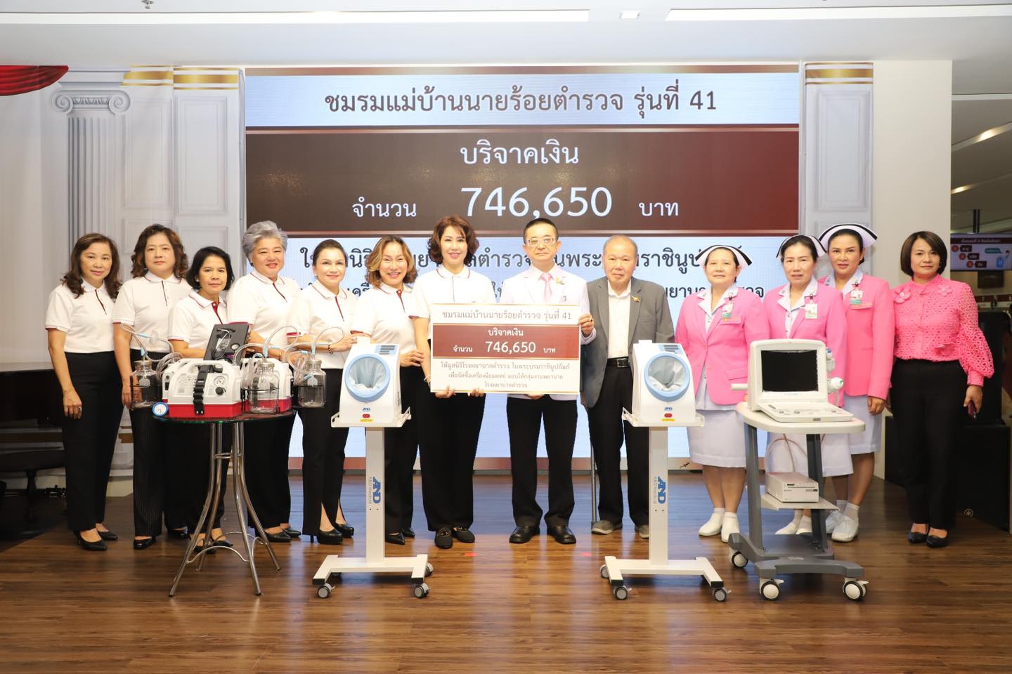 ชมรมแม่บ้านนายร้อยตำรวจรุ่นที่ 41 มอบเงินให้มูลนิธิโรงพยาบาลตำรวจ ในพระบรมราชินูปถัมภ์ จัดซื้อเครื่องมือแพทย์ มอบให้ กลุ่มงานพยาบาล โรงพยาบาลตำรวจ