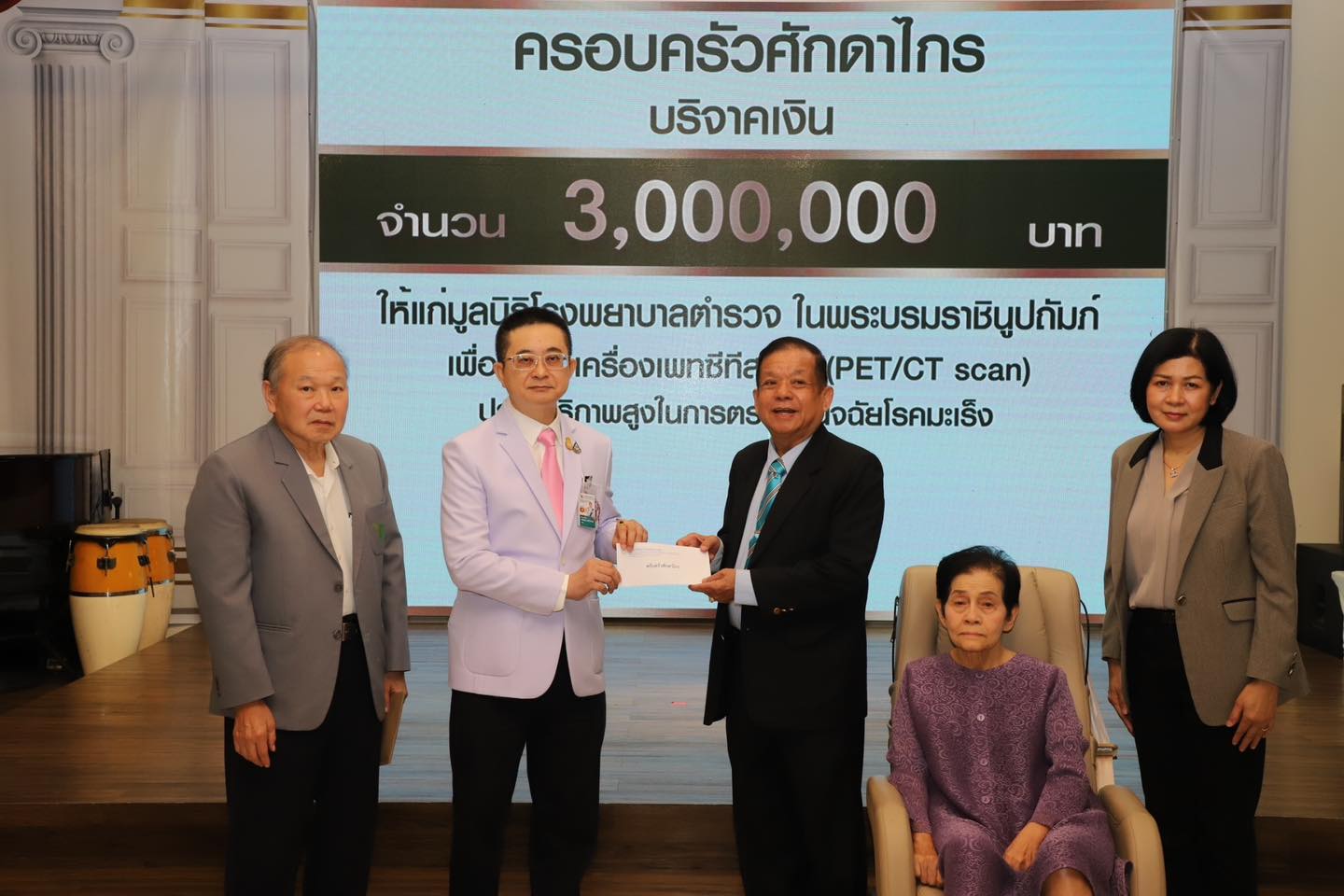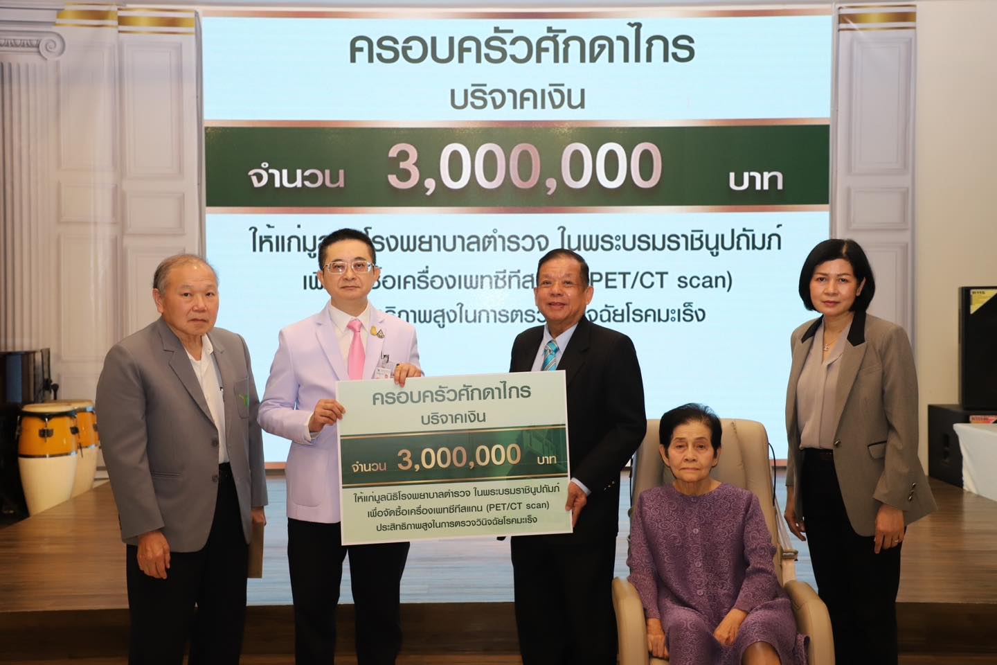 ครอบครัวศักดาไกร บริจาคเงิน 3,000,000 บาท ให้มูลนิธิโรงพยาบาลตำรวจ ในพระบรมราชินูปถัมภ์ จัดซื้อเครื่องเพทซีทีสแกน (PET/CT scan)ประสิทธิภาพสูงในการตรวจวินิจฉัยโรคมะเร็ง