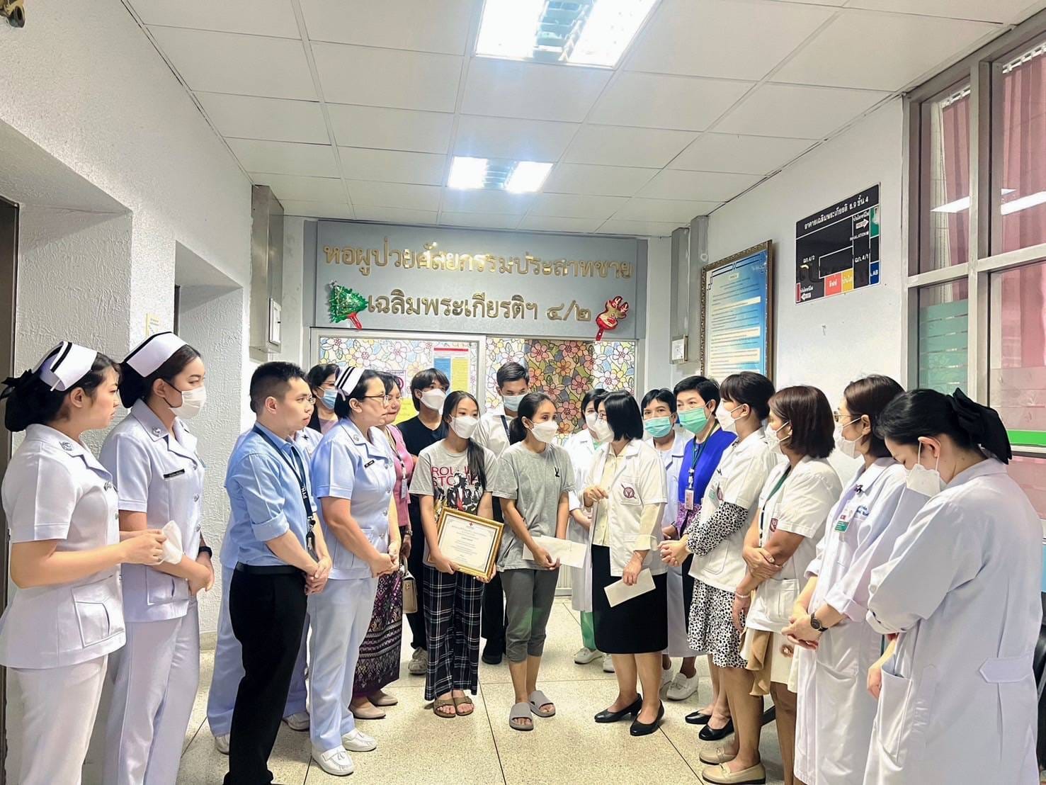 แต่ในเวลาต่อมาตรวจพบว่าสมองได้รับการบาดเจ็บจนเกิดภาวะสมองตาย ครอบครัวและญาติๆ จึงมีความประสงค์จะบริจาคดวงตาและอวัยวะทุกส่วนที่ใช้ประโยชน์ให้แก่ผู้อื่นได้ ผ่านศูนย์รับบริจาคอวัยวะสภากาชาดไทย