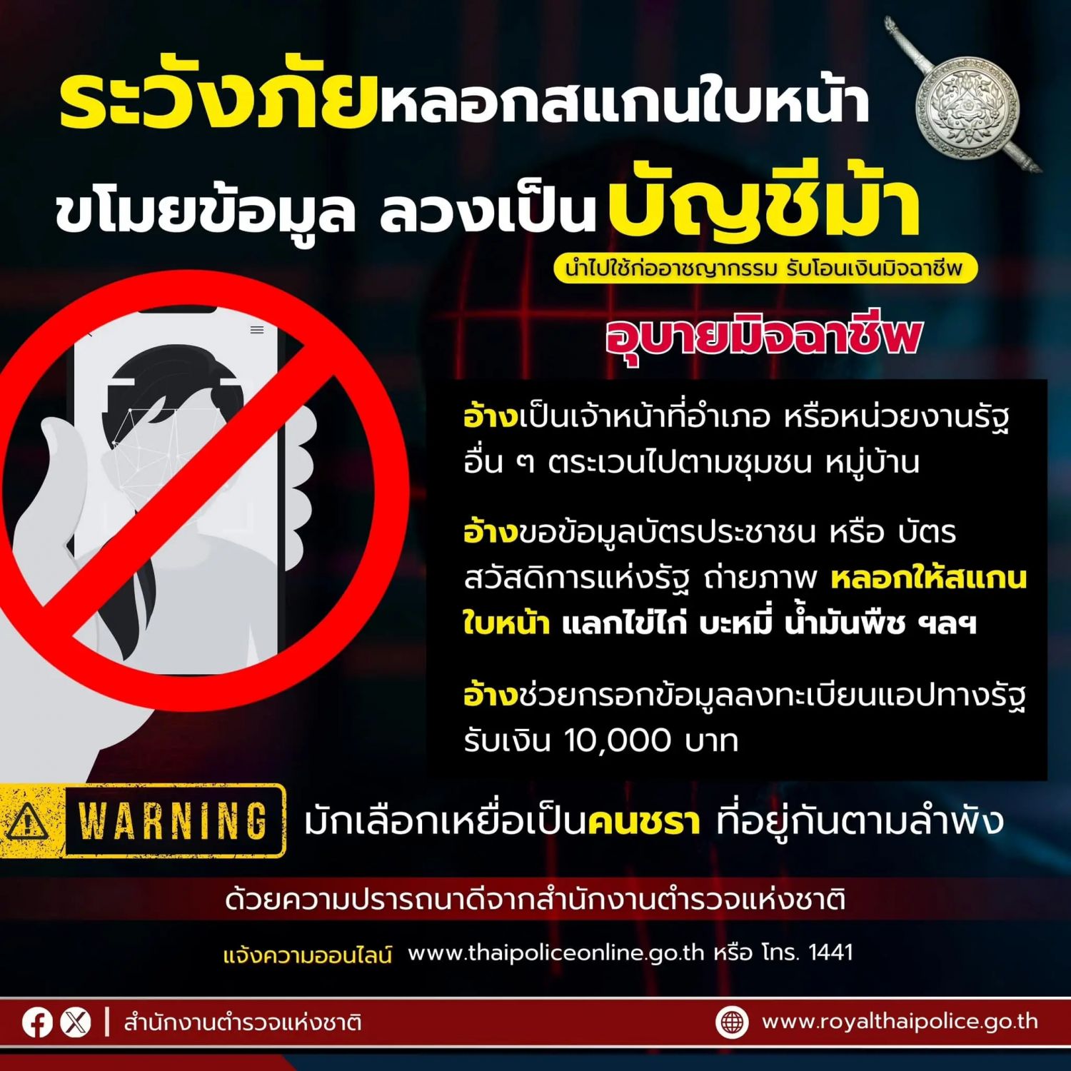 โปรดดูแลสมาชิกในครอบครัว เตือนภัยให้ระวัง #อย่าเชื่อ #อย่าให้ข้อมูลส่วนบุคคล