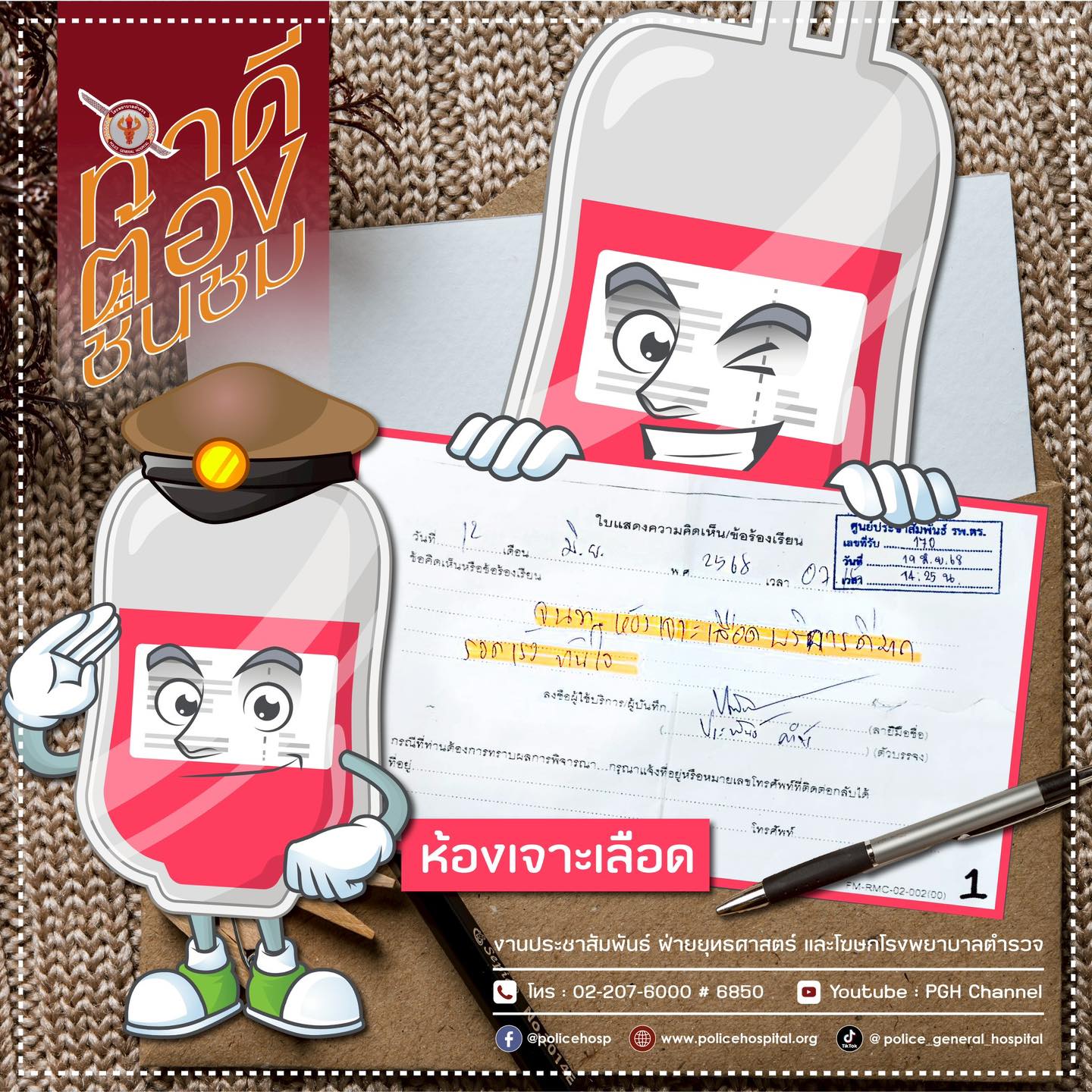 ผู้ใช้บริการห้องเจาะเลือด โรงพยาบาลตำรวจ แสดงความชื่นชม การให้บริการของเจ้าหน้าที่ ที่อำนวยความสะดวก และให้บริการรวดเร็ว ประทับใจมากๆ