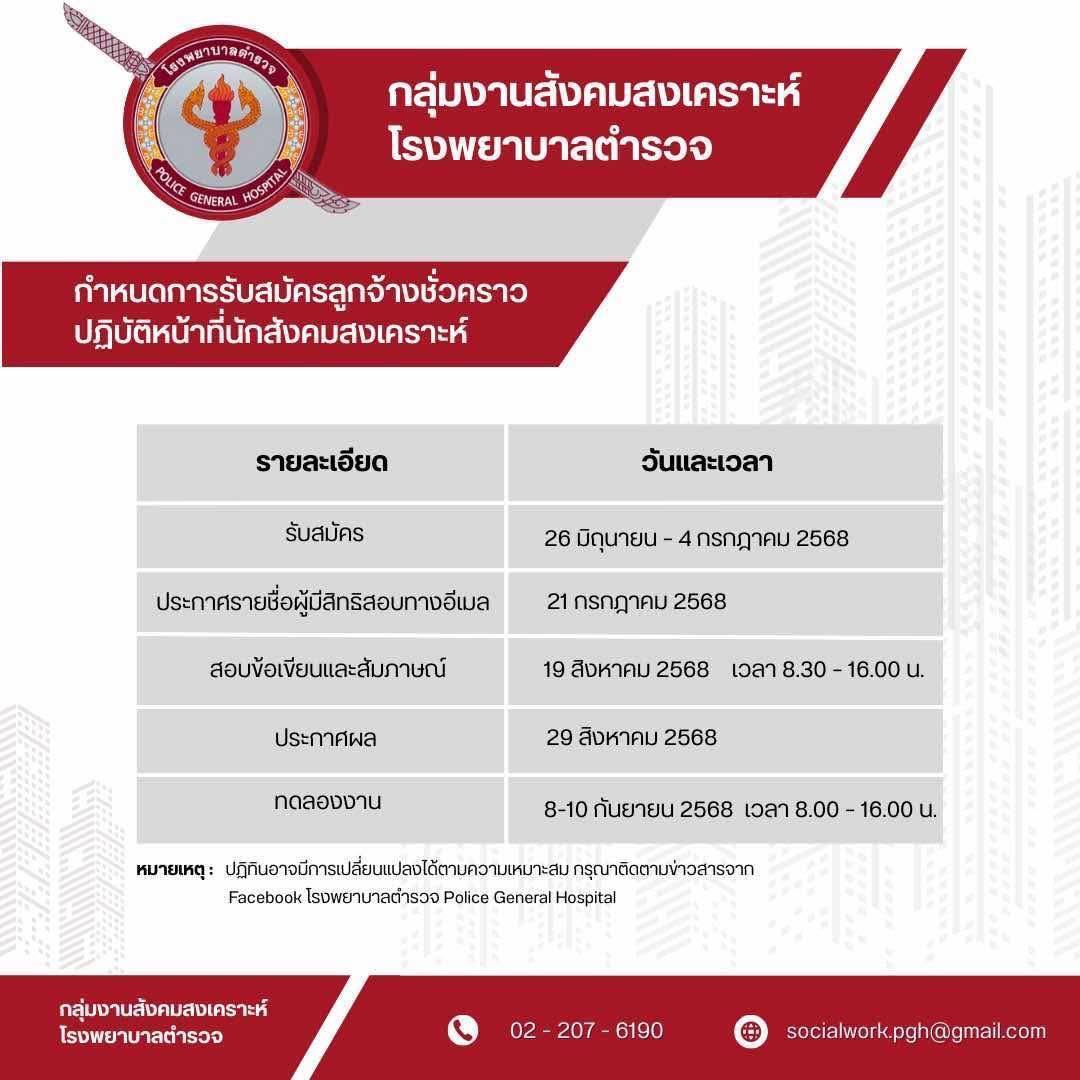 ประกาศกำหนดการ รับสมัครลูกจ้างชั่วคราวปฏิบัติหน้าที่นักสังคมสงเคราะห์ ของกลุ่มงานสังคมสงเคราะห์ โรงพยาบาลตำรวจ มาร่วมเป็นชาว PGH ด้วยกันเยอะๆนะคะ