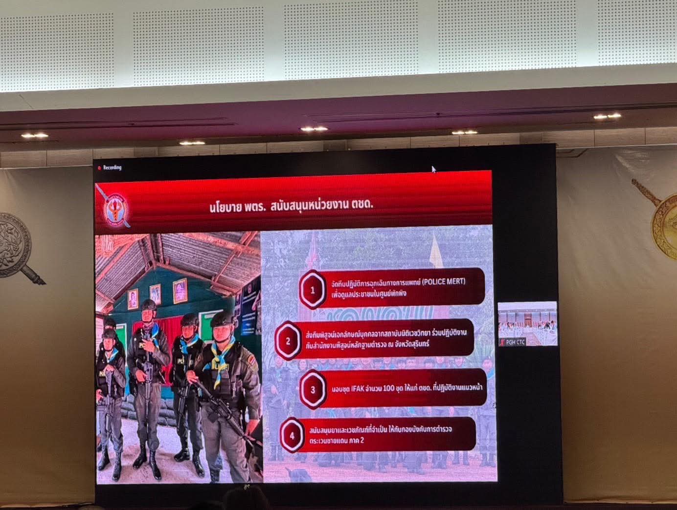 วันอังคารที่ 29 กรกฎาคม 2568 ณ โรงพยาบาลตำรวจ พล.ต.ท. ทวีศิลป์ เวชวิทารณ์ นายแพทย์ใหญ่ (สบ 8)พร้อมคณะผู้บริหาร โรงพยาบาลตำรวจ ประชุมเตรียมความพร้อมสนับสนุนการปฏิบัติทางการแพทย์แก่กองบัญชาการตำรวจตระเวนชายแดน ตามนโยบายของ พล.ต.อ. กิตติ์รัฐ พันธุ์เพ็ชร์ ผู้บัญชาการตำรวจแห่งชาติ ที่สั่งการให้โรงพยาบาลตำรวจพร้อมสนับสนุนผู้ปฏิบัติหน้าที่ส่วนหน้าแนวชายแดนไทย-กัมพูชา