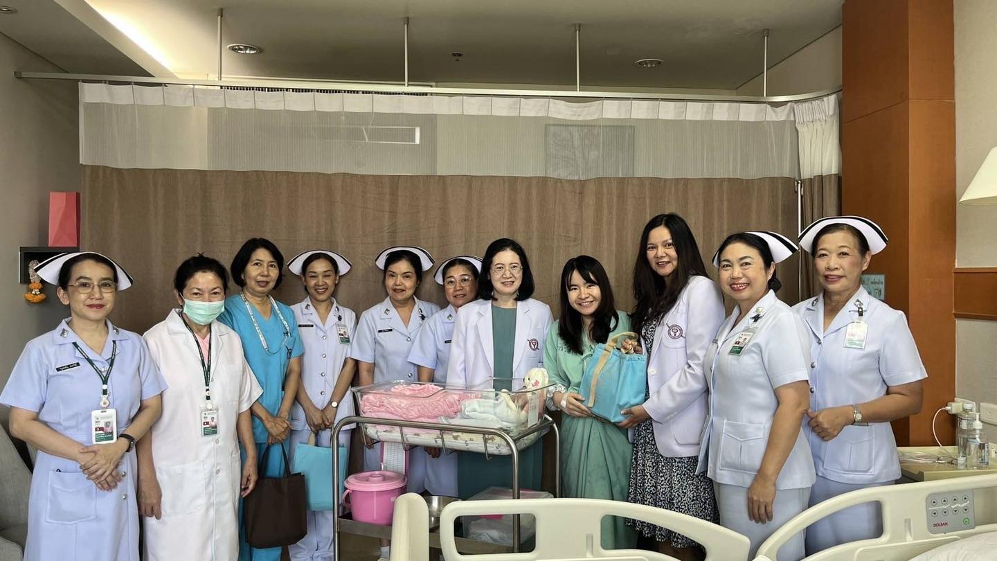 โดย พล.ต.ต.หญิง อมรรัตน์ ธนชัยวิวัฒน์ นายแพทย์ (สบ 6)รพ.ตร./ ปฏิบัติหน้าที่ หัวหน้ากลุ่มงานสูตินรีเวชกรรม พ.ต.อ.หญิง อรพินท์ รัตนพันธมณี นายแพทย์ (สบ 5) กลุ่มงานสูตินรีเวช และ พ.ต.อ.หญิง ณฐมณฑ์ ชงัดเวช พยาบาล(สบ 5) /หัวหน้าสายการพยาบาลสูตินรีเวชกรรม นำทีมพยาบาลเยี่ยมให้กำลังใจ พร้อมมอบของขวัญให้กับคุณแม่ที่คลอดบุตรที่โรงพยาบาลตำรวจ ระหว่าง 10-12 สิงหาคม 2568 จำนวน10ราย