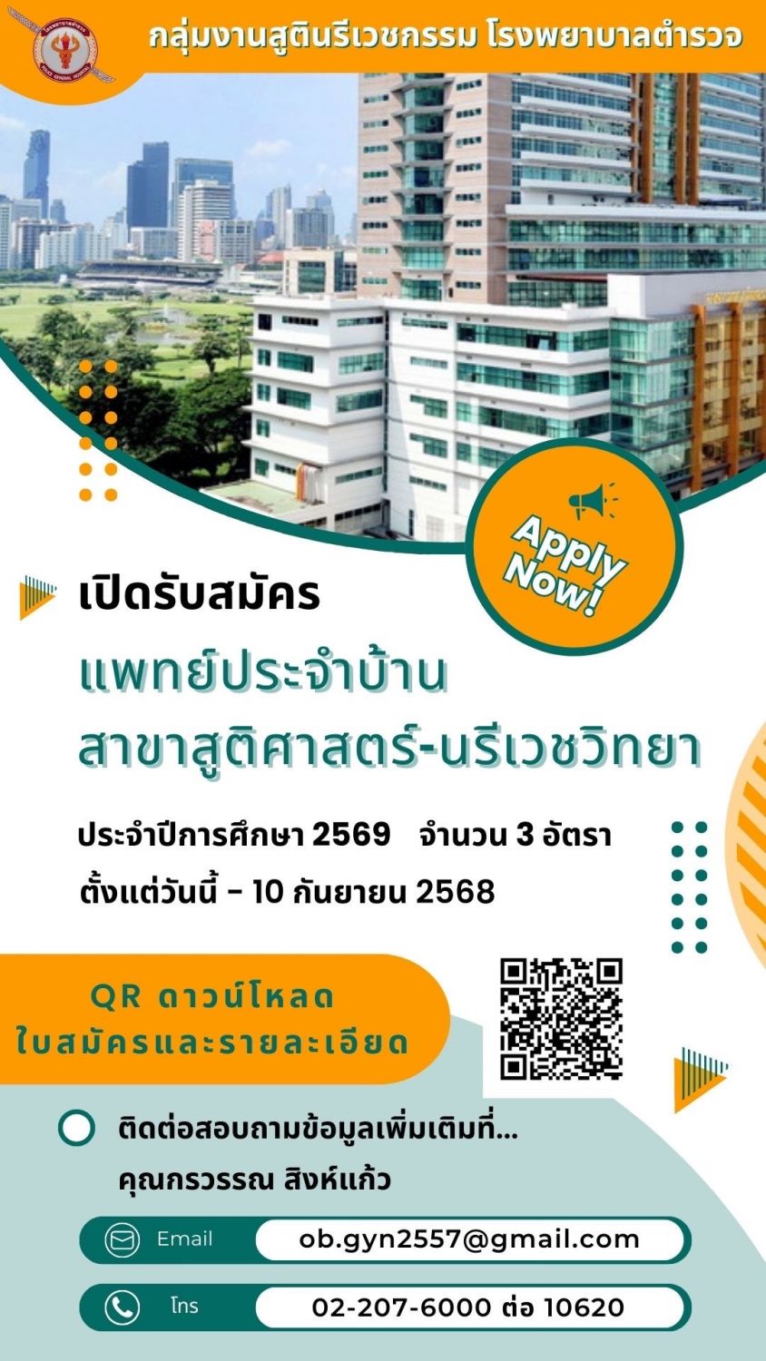 กลุ่มงานสูตินรีเวชกรรม เปิดรับสมัครแพทย์ประจำบ้านจำนวน 3 อัตรา แพทย์ปฏิบัติการจำนวน 2 อัตรา