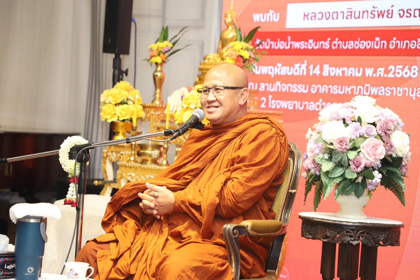 โดย พล.ต.ต.หญิง พันวดี รัตนสุมาวงศ์ นายแพทย์ ( สบ 7) โรงพยาบาลตำรวจ /ประธานคณะกรรมการแผ่นดินธรรมแผ่นดินทอง โรงพยาบาลตำรวจ ร่วมกิจกรรมสนทนาธรรมะ โดย หลวงตาสินทรัพย์ จรณธัมโม หรือพระสิ้นคิด วัดป่าบ่อน้ำพระอินทร์ ตำบลช่องเม็ก อำเภอสิรินธร จังหวัดอุบลราชธานี ที่มาบรรยายธรรมะ ในการดำเนินชีวิต ให้กับผู้เข้าร่วมกิจกรรม