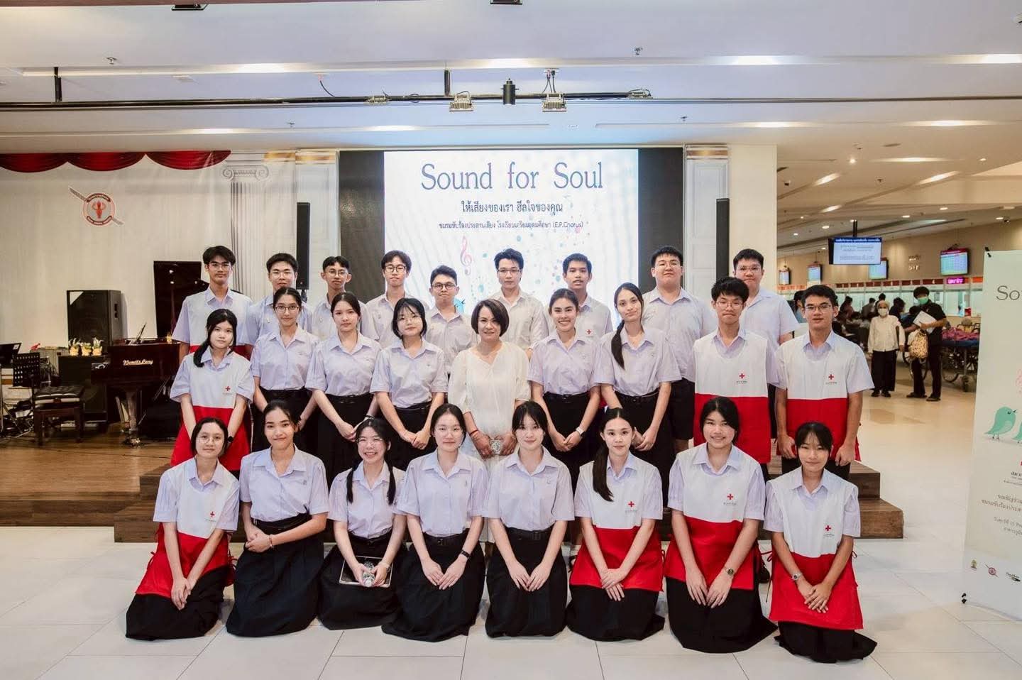 วันศุกร์ที่ 15 สิงหาคม 2568 ณ ลานกิจกรรม ชั้น 2 อาคารมหาภูมิพลราชานุสรณ์ 88 พรรษา โรงพยาบาลตำรวจ สำนักงานยุวกาชาดและอาสาสมัคร สภากาชาดไทย ร่วมกับชมรมขับร้องประสานเสียง โรงเรียนเตรียมอุดมศึกษาและนักเรียนอาสาสมัคร จัดโครงการ “Sound for soul ให้เสียงของเราฮีลใจของคุณ”