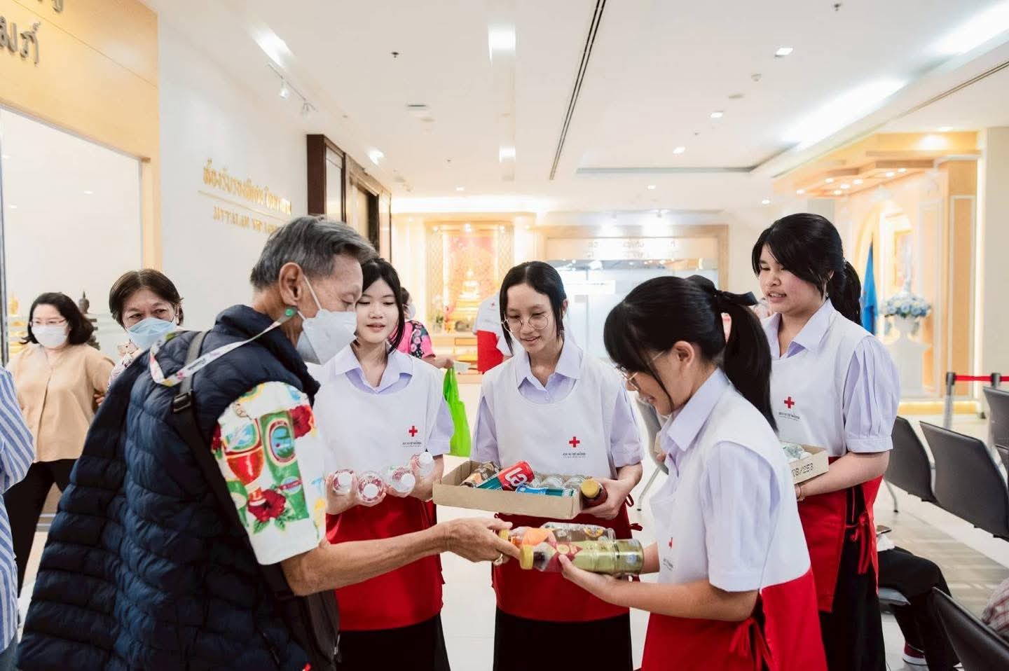 ทำกิจกรรมขับร้องประสานเสียง และมอบเครื่องดื่ม ของที่ระลึก ให้แก่ผู้มาใช้บริการ ตลอดจนเจ้าหน้าที่ที่ปฏิบัติงานที่โรงพยาบาลตำรวจ ได้รับเกียรติจาก พล.ต.ต.หญิง ศิริกุล ศรีสง่า พยาบาล (สบ 6) โรงพยาบาลตำรวจ/โฆษกโรงพยาบาลตำรวจ ร่วมกิจกรรมมอบกำลังใจแก่เหล่าอาสาสมัคร และ พล.ต.ต.หญิง นันทิยา สุจิรัตนวิมล นายแพทย์ (สบ 6) โรงพยาบาลตำรวจ กล่าวขอบคุณซึ่งสร้างแรงบรรดาลใจและกำลังใจให้กับอาสาสมัครทุกคนในการทำความดีต่อไป