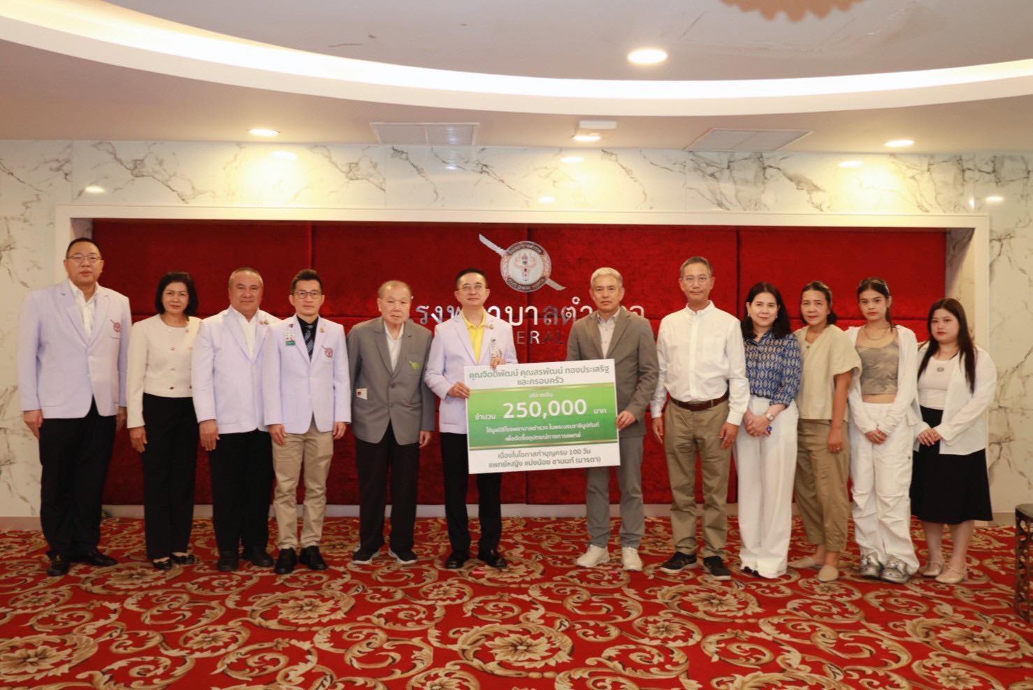 วันจันทร์ที่ 22 กันยายน 2568 ณ ห้องรังสิพราหมณกุล ชั้น 19 อาคารมหาภูมิพลราชานุสรณ์ 88 พรรษา โรงพยาบาลตำรวจ คุณจิตติพัฒน์ คุณสรพัฒน์ ทองประเสริฐ และครอบครัวบริจาคเงินจำนวน 250,000 บาท ให้มูลนิธิโรงพยาบาลตำรวจ ในพระบรมราชินูปถัมภ์ เพื่อจัดซื้ออุปกรณ์ทางการแพทย์ เนื่องในโอกาสทำบุญครบ 100 วัน แพทย์หญิง แน่งน้อย ชานนท์ (มารดา)