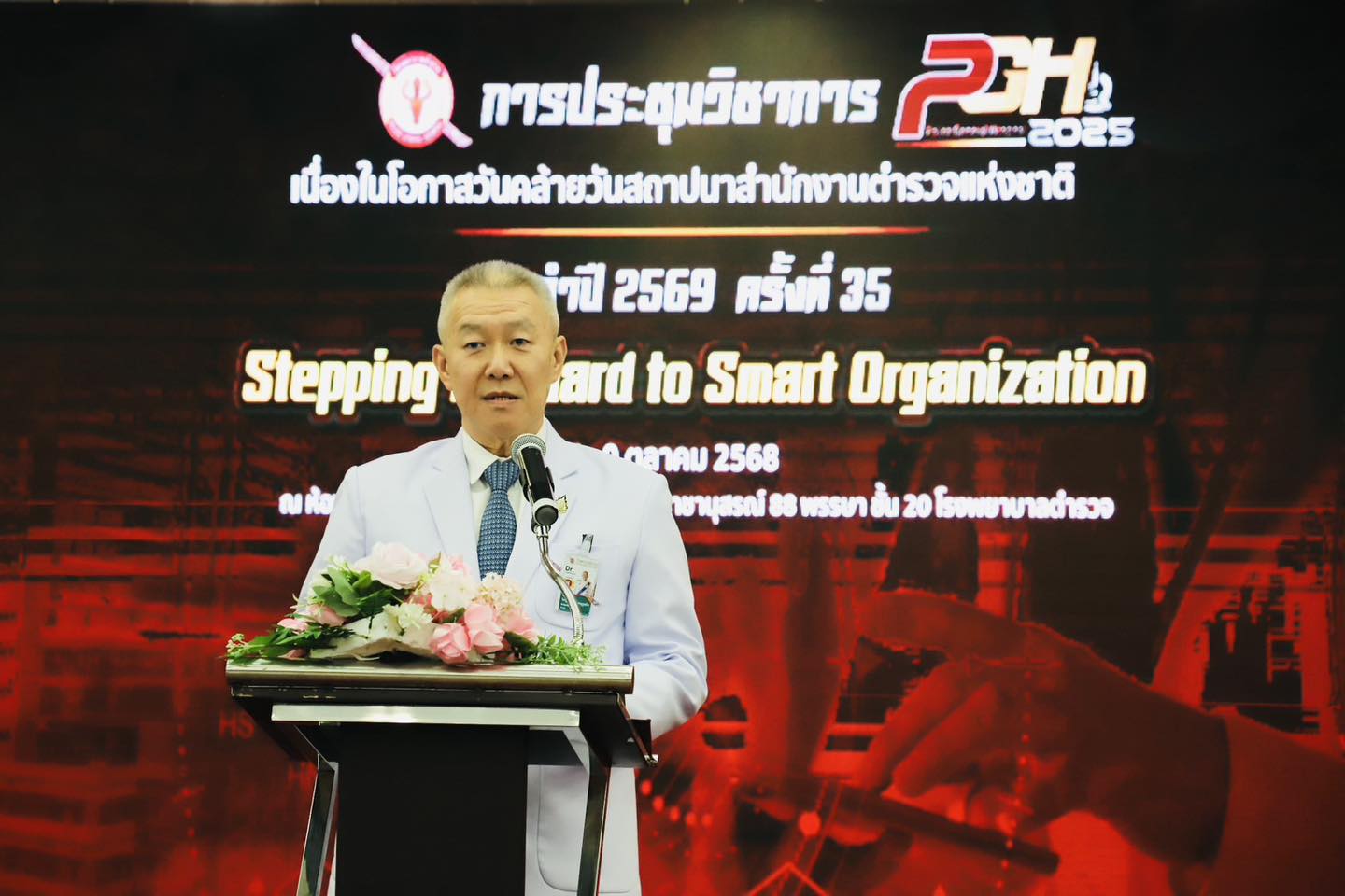 วันอังคารที่ 7 ตุลาคม 2568 ณ ห้องประชุมชัยจินดา 1 อาคารมหาภูมิพลราชานุสรณ์ 88 พรรษา ชั้น 20 โรงพยาบาลตำรวจ พล.ต.ท.ไพบูลย์ เจียมอนุกูลกิจ นายแพทย์ (สบ 8)โรงพยาบาลตำรวจ รักษาราชการแทน นายแพทย์ใหญ่ (สบ 8)เป็นประธานเปิดโครงการประชุมวิชาการโรงพยาบาลตำรวจ เนื่องในโอกาสคล้ายวันสถาปนาสำนักงานตำรวจแห่งชาติ ประจำปีงบประมาณ พ.ศ.2569 ครั้งที่ 35