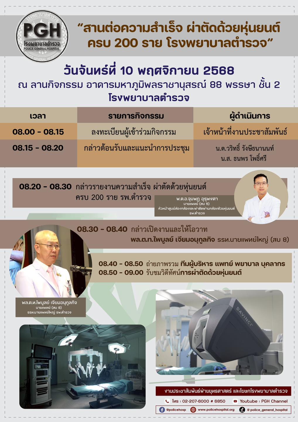 เชิญบุคลากรโรงพยาบาลตำรวจ และประชาชนร่วมกิจกรรมงาน “สานต่อความสำเร็จ” นำเอาเทคโนโลยีทันสมัยหุ่นยนต์ผ่าตัด โรงพยาบาลตำรวจ