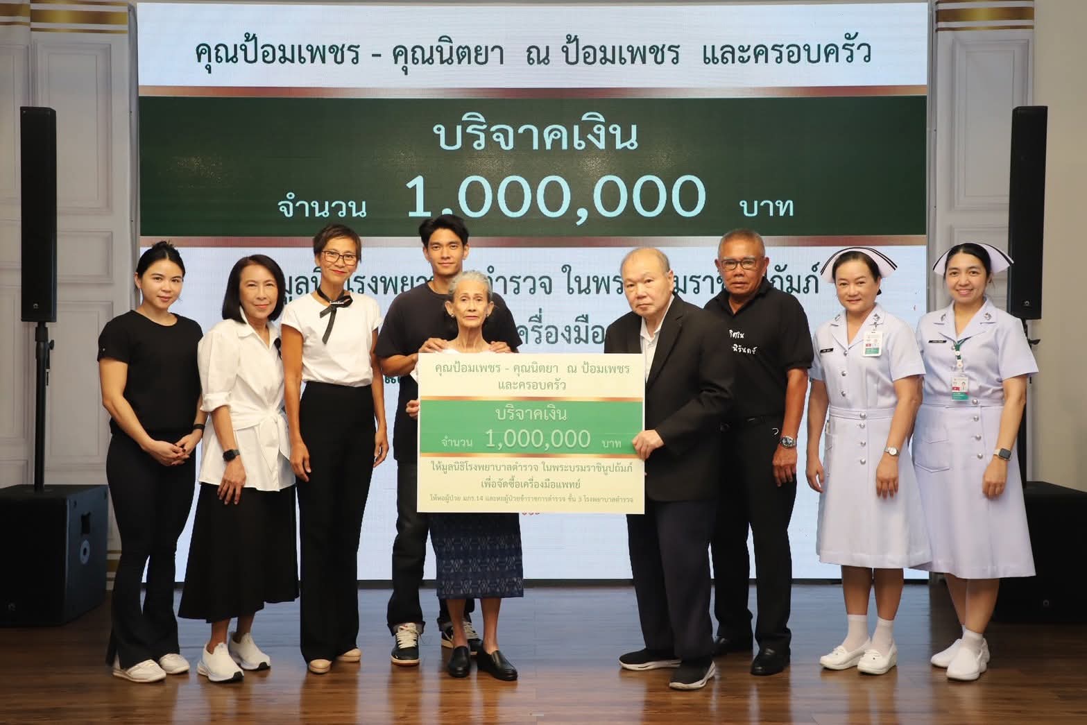 วันจันทร์ที่ 17 พฤศจิกายน 2568 ณ ลานกิจกรรม ชั้น 2 อาคารมหาภูมิพลราชานุสรณ์ 88 พรรษา โรงพยาบาลตำรวจ พล.ต.ต.ทรงชัย สิมะโรจน์ เหรัญญิกมูลนิธิ โรงพยาบาลตำรวจ ในพระบรมราชินูปถัมภ์ รับมอบเงินจำนวน 1,000,000 บาท จาก คุณป้อมเพชร - คุณนิตยา ณ ป้อมเพชร และครอบครัว