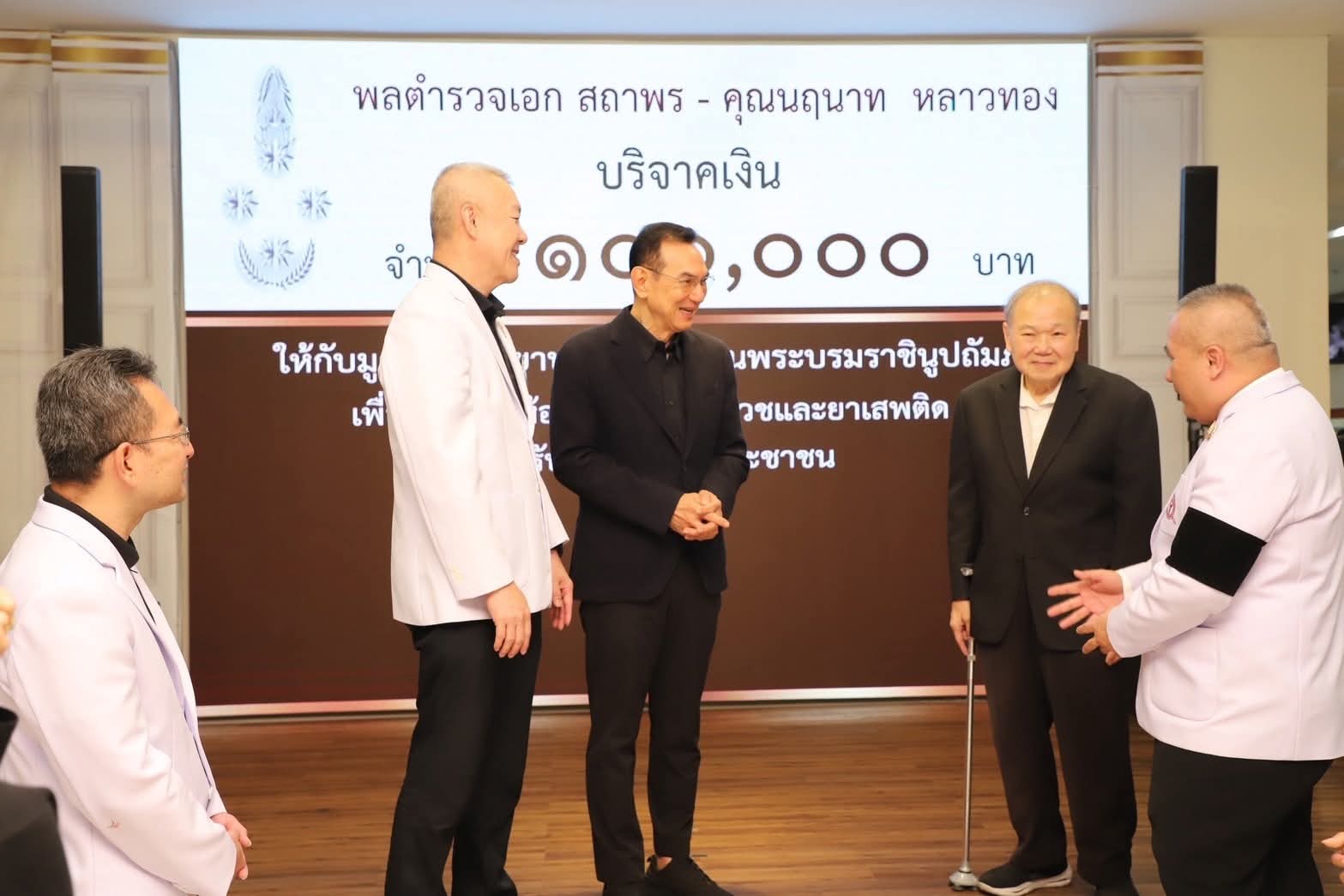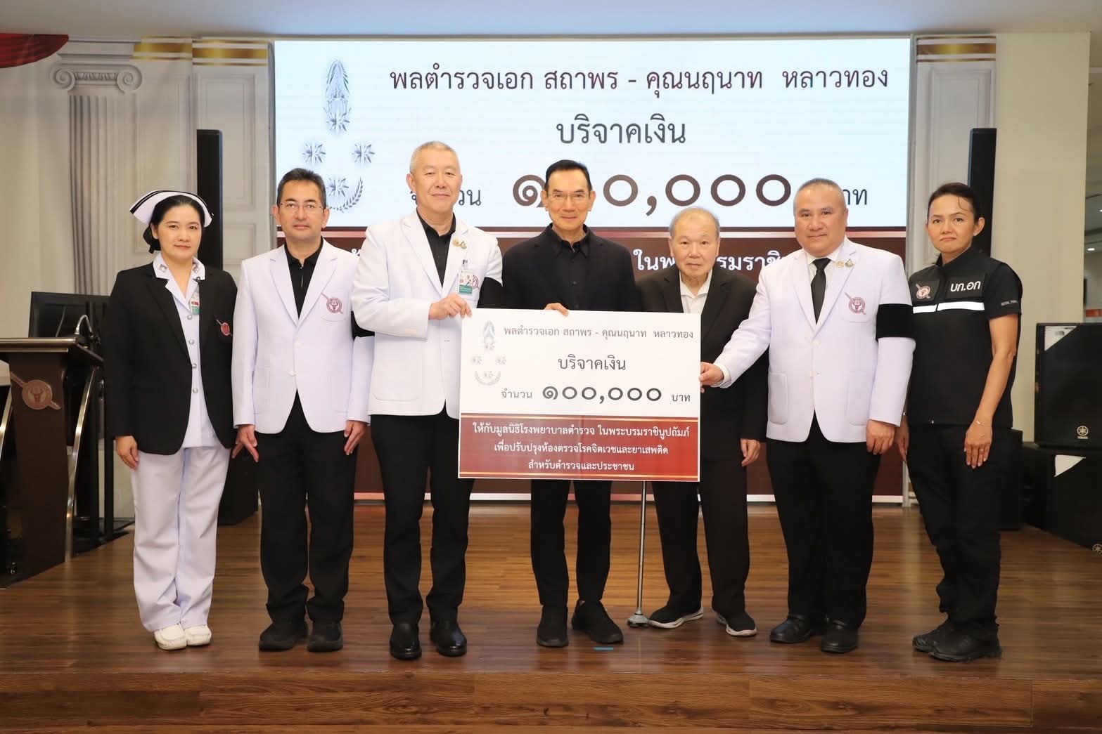 รับมอบเงินบริจาคจำนวน 100,000 บาท จาก พล.ต.อ.สถาพร หลาวทอง อดีตจเรตำรวจแห่งชาติ พร้อมคุณนฤนาท หลาวทอง ภริยา มอบให้มูลนิธิโรงพยาบาลตำรวจ ในพระบรมราชินูปถัมภ์ เพื่อใช้ในการปรับปรุงห้องตรวจโรคจิตเวชและยาเสพติดสำหรับข้าราชการตำรวจและประชาชน