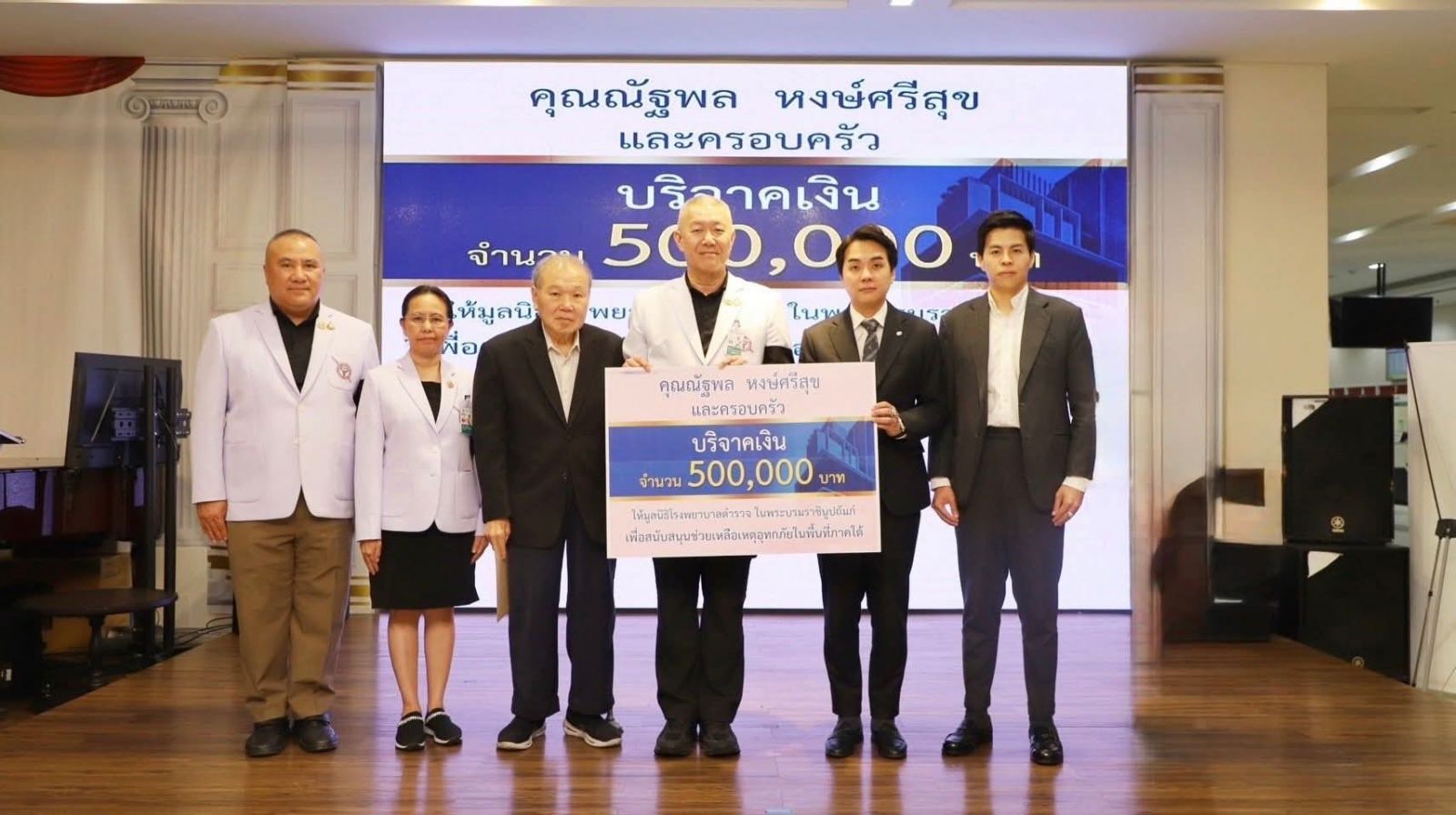 รับมอบเงินบริจาค จำนวน 500,000 บาท จากคุณณัฐพล หงษ์ศรีสุข และครอบครัว เพื่อมอบให้แก่มูลนิธิโรงพยาบาลตำรวจ ในพระบรมราชินูปถัมภ์ ในการสนับสนุนช่วยเหลือเหตุอุทกภัยในพื้นที่ภาคใต้
