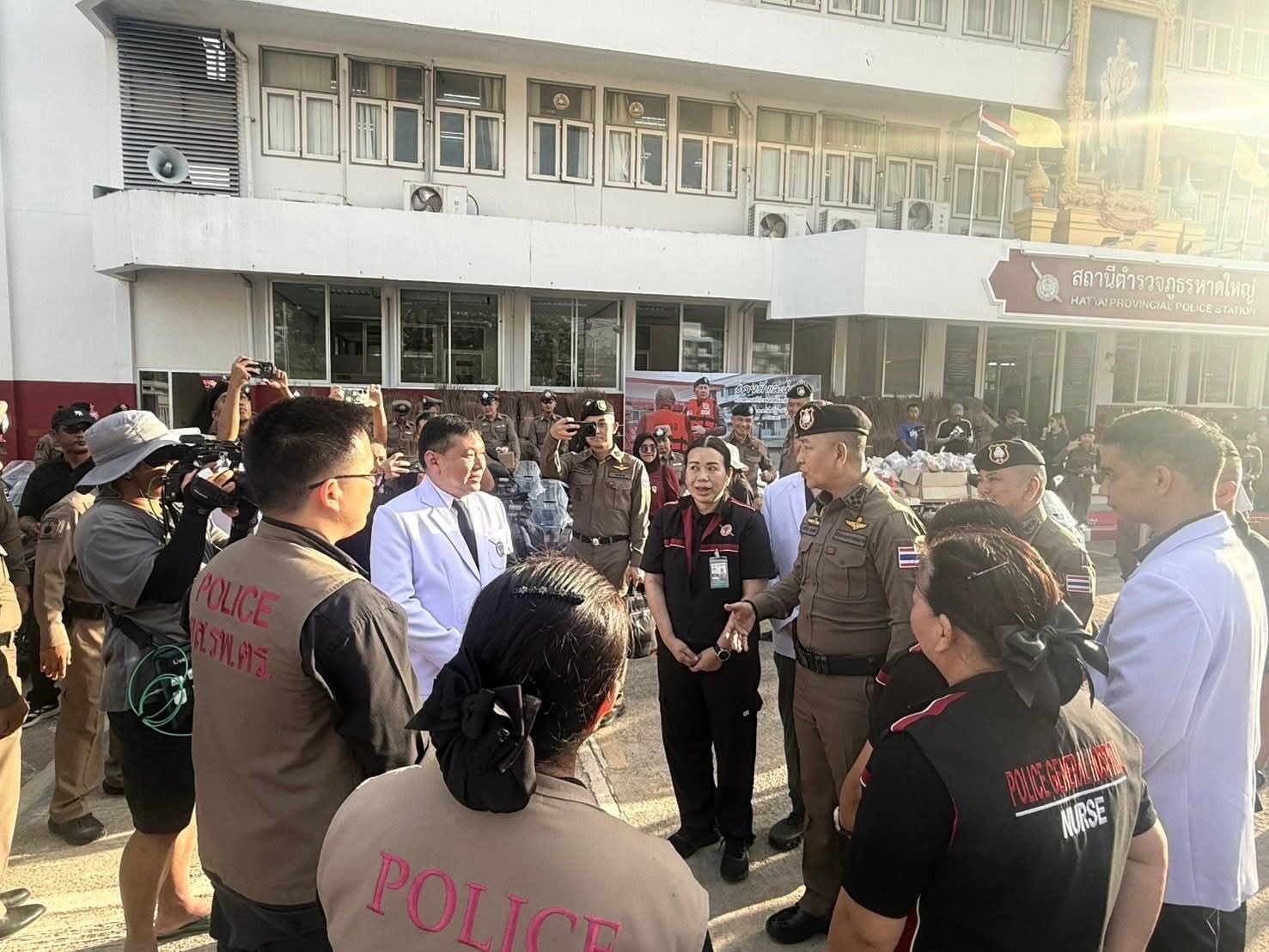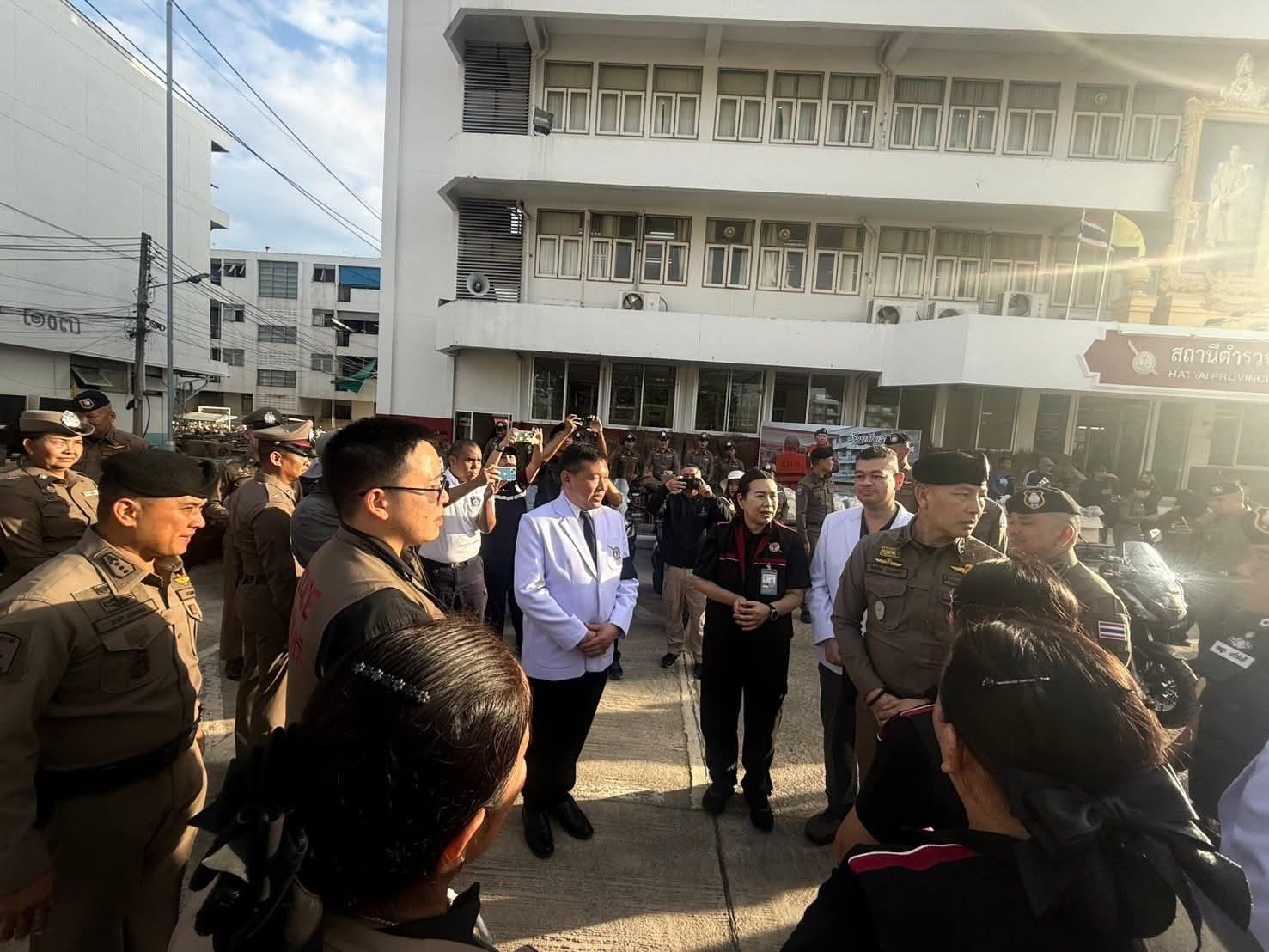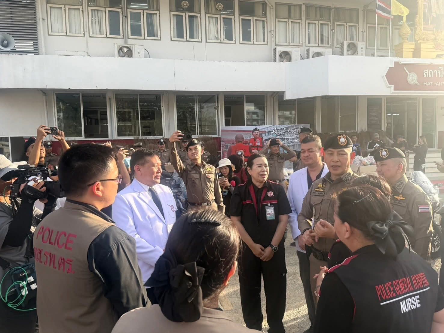 วันพฤหัสบดีทึ่ 4 ธันวาคม 2568 ณ ลานหน้าสถานีตำรวจภูธรหาดใหญ่ พล.ต.อ.กิตติ์รัฐ พันธุ์เพ็ชร์ ผู้บัญชาการตำรวจแห่งชาติ และคณะ ลงพื้นที่ตรวจเยี่ยมให้กำลังใจบุคลากรทางการแพทย์ของโรงพยาบาลยะลาสิริรัตนรักษ์ จ.ยะลา พร้อมมอบสิ่งของช่วยเหลือ อีกทั้งปล่อยแถวข้าราชการตำรวจที่ปฏิบัติหน้าที่