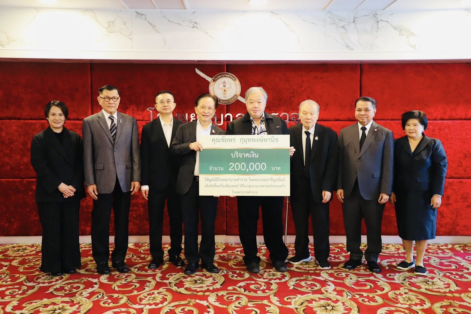 วันพุธที่ 17 ธันวาคม 2568 ณ ห้องรังสิพราหมณกุล ชั้น 19 อาคารมหาภูมิพลราชานุสรณ์ 88 พรรษา โรงพยาบาลตำรวจ คุณชัยพร กุมุทพงษ์พานิช บริจาคเงิน 200,000 บาท และมอบเงินสดเพิ่มอีก 200,000 บาท รวมเป็นเงิน 400,000 บาท ให้มูลนิธิโรงพยาบาลตำรวจ ในพระบรมราชินูปถัมภ์ เพื่อจัดซื้อเครื่องมือแพทย์ใช้ในกลุ่มงานเวชศาสตร์ครอบครัว โรงพยาบาลตำรวจ