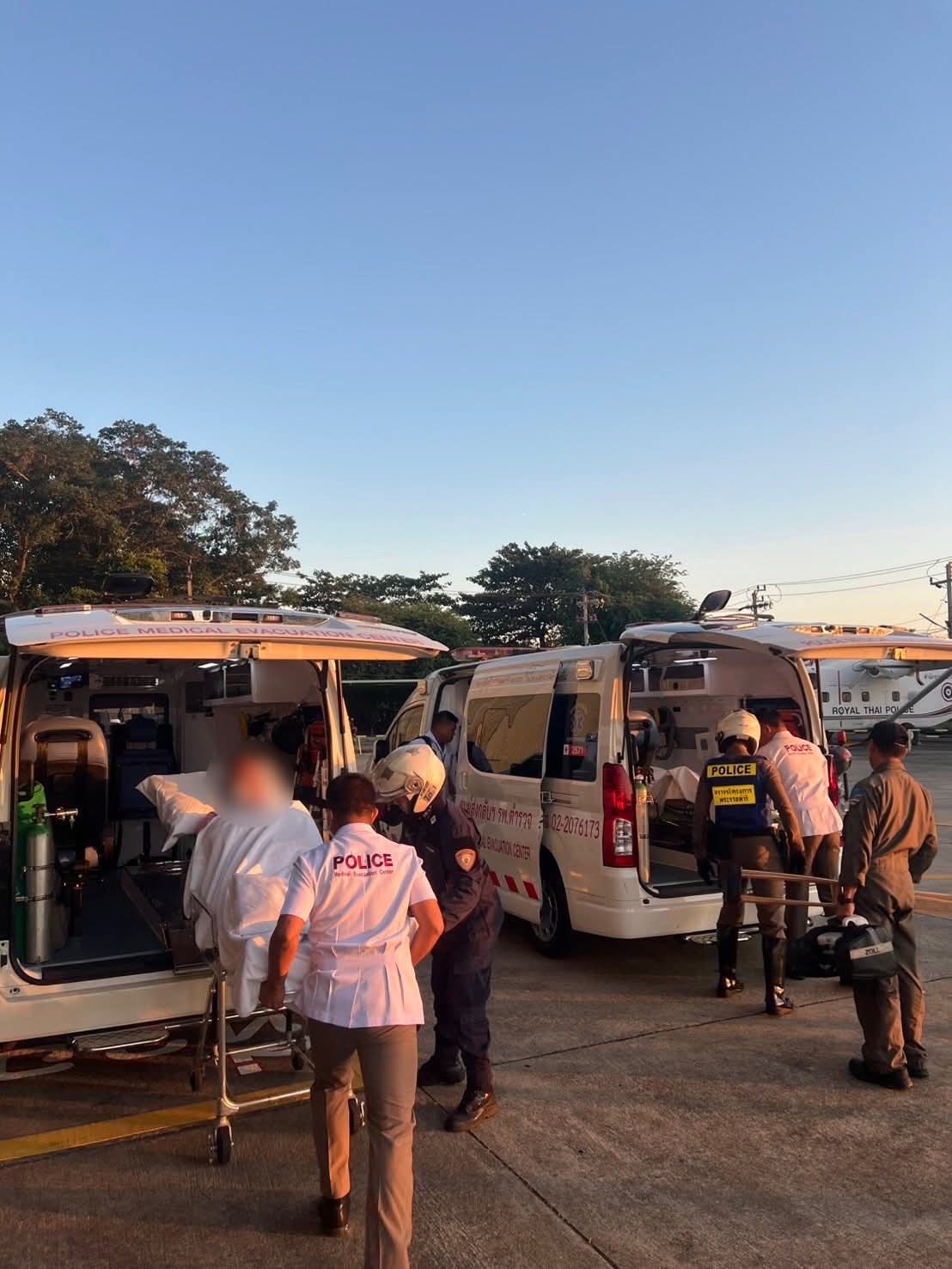 โดยมีรถพยาบาลของกลุ่มงานศูนย์ส่งกลับและรถพยาบาล โรงพยาบาลตำรวจ รับผู้ป่วยมาส่งห้องฉุกเฉินและอุบัติเหตุ โรงพยาบาลตำรวจ ในเวลา 18.02 น.