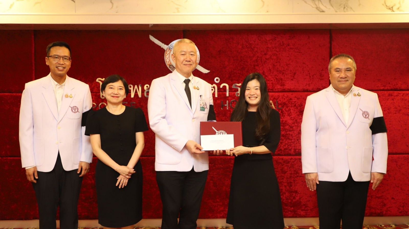 วันพฤหัสบดีที่ 25 ธันวาคม 2568 ณ ห้องรังสิพราหมณกุล ชั้น 19 อาคารมหาภูมิพลราชานุสรณ์ 88 พรรษา โรงพยาบาลตำรวจพล.ต.ท.ไพบูลย์ เจียมอนุกูลกิจ นายแพทย์ (สบ 8)โรงพยาบาลตำรวจ รักษาราชการแทน นายแพทย์ใหญ่ (สบ 8)มอบใบประกาศนียบัตรและรางวัลการนำเสนอผลงานวิชาการ เนื่องในโอกาสวันคล้ายวันสถาปนาสำนักงานตำรวจแห่งชาติ ครั้งที่ 35 ประจำปี 2569