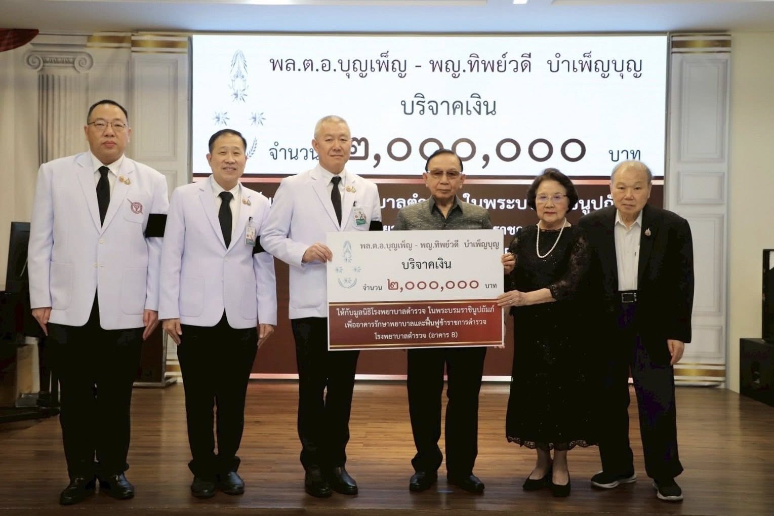 วันจันทร์ที่ 9 กุมภาพันธ์ 2569 ณ ลานกิจกรรมชั้น 2 อาคารมหาภูมิพลราชานุสรณ์ 88 พรรษา โรงพยาบาลตำรวจ พล.ต.ท. ไพบูลย์ เจียมอนุกูลกิจ นายแพทย์ (สบ 8)โรงพยาบาลตำรวจ รักษาราชการแทน นายแพทย์ใหญ่ (สบ 8)พร้อมคณะผู้บริหาร โรงพยาบาลตำรวจ รับมอบเงินบริจาค จำนวน 2,000,000 บาท จาก พล.ต.อ.บุญเพ็ญ และ พญ.ทิพย์วดี บำเพ็ญบุญ ที่มอบให้มูลนิธิโรงพยาบาลตำรวจ ในพระบรมราชินูปถัมภ์ เพื่อใช้ประโยชน์ในอาคารรักษาพยาบาลและฟื้นฟูข้าราชการตำรวจ โรงพยาบาลตำรวจ