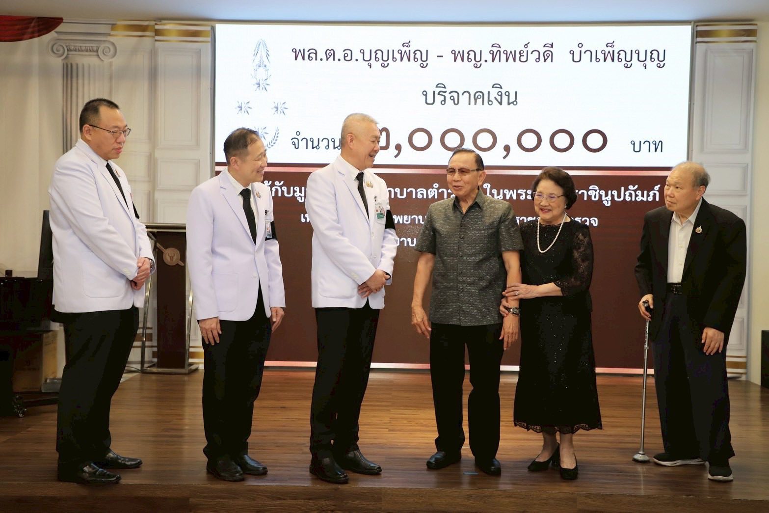 พล.ต.ท.ไพบูลย์ เจียมอนุกูลกิจ นายแพทย์ (สบ 8)โรงพยาบาลตำรวจ รักษาราชการแทน นายแพทย์ใหญ่ (สบ 8)กล่าวขอบคุณ พล.ต.อ.บุญเพ็ญ บำเพ็ญบุญ และ พญ.ทิพย์วดี บำเพ็ญบุญ ภริยา ที่บริจาคเงินให้มูลนิธิโรงพยาบาลตำรวจ ในพระบรมราชินูปถัมภ์ ทางมูลนิธิฯ จะนำเงินที่ได้รับบริจาคในครั้งนี้ไปใช้ให้เกิดประโยชน์สูงสุดตามวัตถุประสงค์ของผู้บริจาค