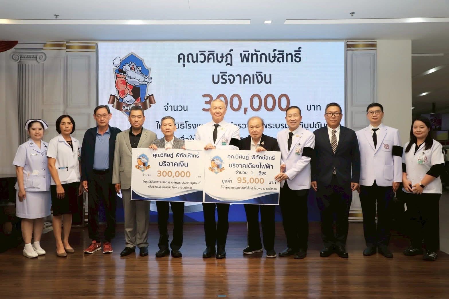 วันพฤหัสบดีที่ 5 มีนาคม 2569 ณ ลานกิจกรรมชั้น 2 อาคารมหาภูมิพลราชานุสรณ์ 88 พรรษา โรงพยาบาลตำรวจ คุณวิศิษฎ์ พิทักษ์สิทธิ์ พร้อมด้วย พล.ต.อ.วิสนุ ปราสาททองโอสถ อดีตจเรตำรวจแห่งชาติ/ผู้อำนวยการหลักสูตรรวมมิตร และกลุ่มนักศึกษารวมมิตร มอบเงินจำนวน 300,000 บาท ให้มูลนิธิโรงพยาบาลตำรวจ ในพระบรมราชินูปถัมภ์ เพื่อสนับสนุนภารกิจของโรงพยาบาลตำรวจ