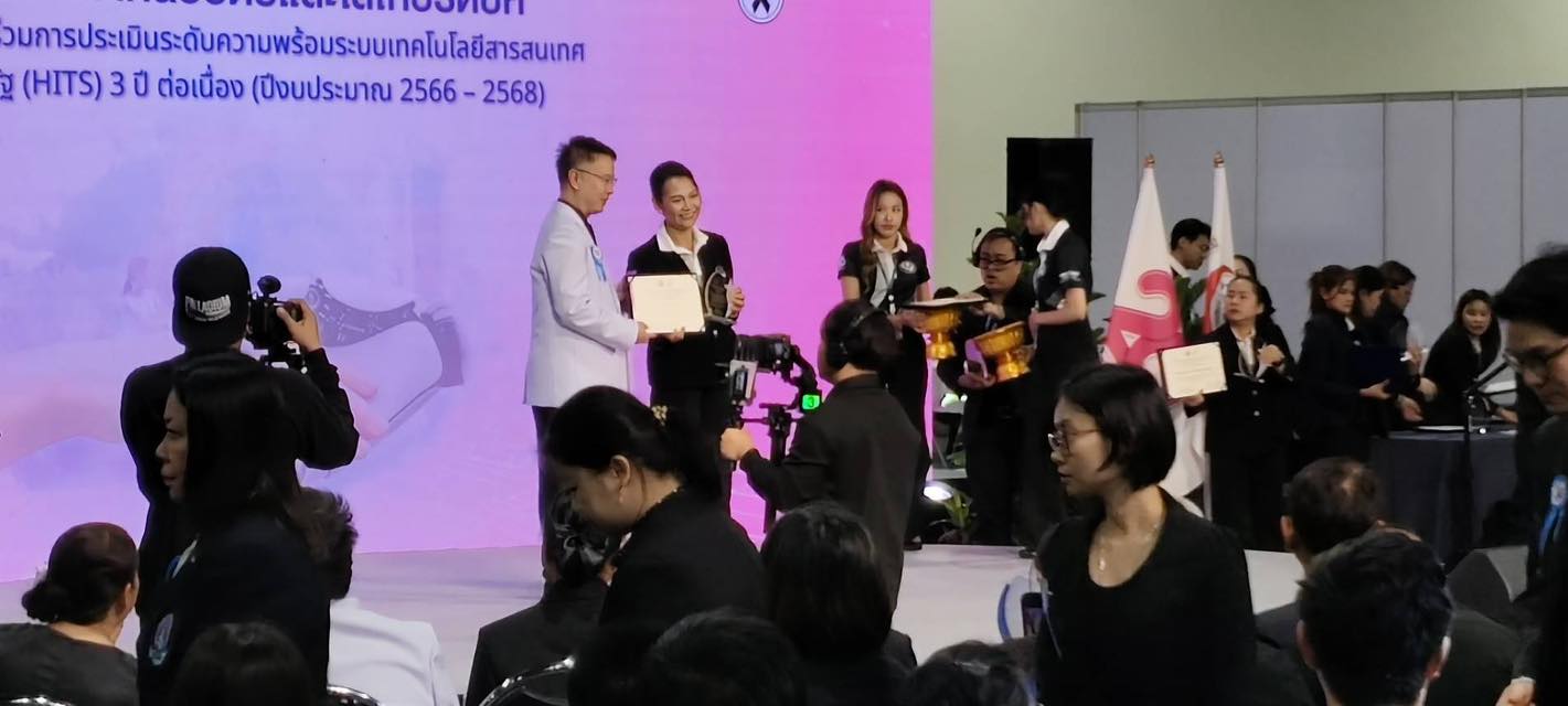รับโล่รางวัลเกียรติยศ สำหรับโรงพยาบาลที่เข้าร่วมการประเมินระดับความพร้อมระบบเทคโนโลยีสารสนเทศโรงพยาบาลรัฐ