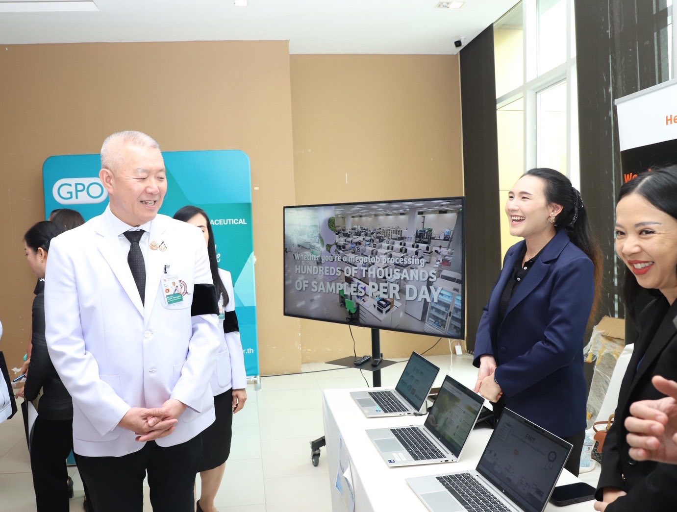 จากนั้น พล.ต.ท.ไพบูลย์ เจียมอนุกูลกิจ นายแพทย์ (สบ 8)โรงพยาบาลตำรวจ รักษาราชการแทน นายแพทย์ใหญ่ (สบ 8)และคณะผู้บริหาร โรงพยาบาลตำรวจ เยี่ยมชมบูธนวัตกรรมจากบริษัทผู้ผลิตเครื่องมือแพทย์ ซึ่งเป็นประโยชน์ต่อการพัฒนาระบบบริการทางการแพทย์
