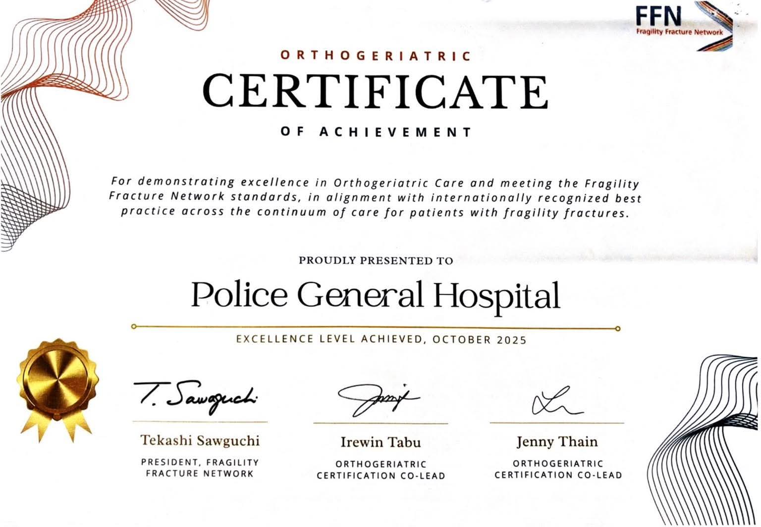โรงพยาบาลตำรวจ ได้รับการรับรองมาตรฐานการดูแลผู้ป่วยกระดูกหักในผู้สูงอายุ (Orthogeriatric Certification) ในระดับ “ดีเลิศ” จากองค์กร Fragility Fracture Network
