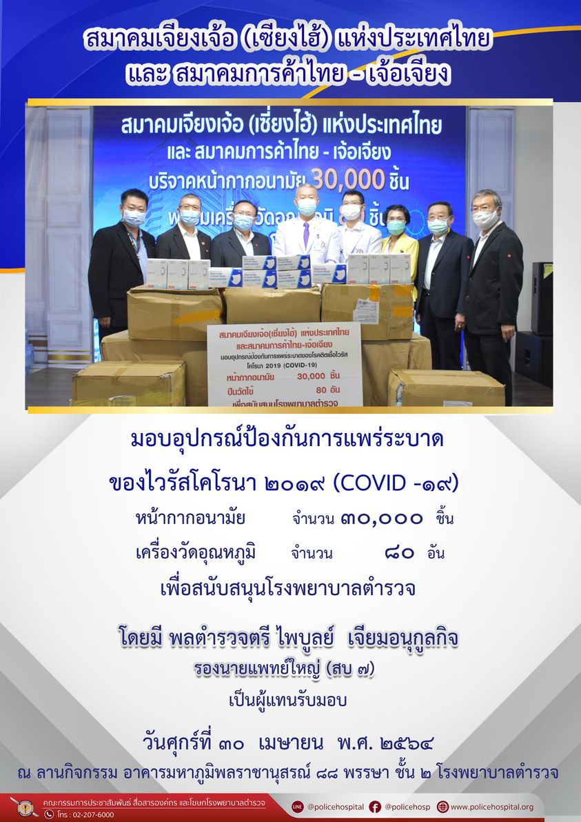 สมาคมเจียงเจ้อ (เซียงไฮ้) แห่งประเทศไทย และสมาคมการค้าไทย-เจ้อเจียง มอบหน้ากากอนามัย