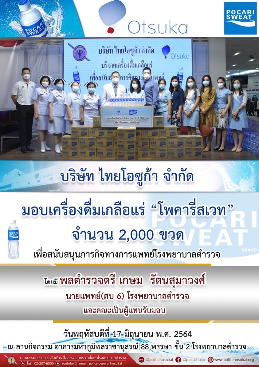 เมื่อวันพฤหัสบดีที่ 17 มิถุนายน พ.ศ. 2564 คุณพศวัฒน์ โทมัส ประธานกรรมการบริษัท โทมัส ดีไซน์ จำกัด และคณะ บริจาคเจลล้างมือแอลกอฮอล์ หน้ากากอนามัย และปืนวัดอุณหภูมิให้โรงพยาบาลตำรวจ เพื่อดูเเลรักษา เเละป้องกันการเเพร่ระบาดของเชื้อไวรัส COVID-19 ซึ่งรายได้ทั้งหมดได้จากการจำหน่ายจักรยานยนต์ไฟฟ้า รุ่นพิเศษสำหรับคนไทยสู้ภัย COVID-19 โดยมี พลตำรวจตรี บุณยรัสน์ พุกกะเวส นายแพทย์(สบ 7) โรงพยาบาลตำรวจ และคณะเป็นผู้แทนรับมอบมื่อวันพฤหัสบดีที่ 17 มิถุนายน พ.ศ. 2564 บริษัท ไทยโอซูก้า จำกัด มอบเครื่องดื่มเกลือแร่ “โพคารี่สเวท” จำนวน 2,000 ขวด เพื่อสนับสนุนภารกิจทางการแพทย์โรงพยาบาลตำรวจ โดยมี พลตำรวจตรี เกษม รัตนสุมาวงศ์ นายแพทย์(สบ 6) และคณะเป็นผู้แทนรับมอบ
