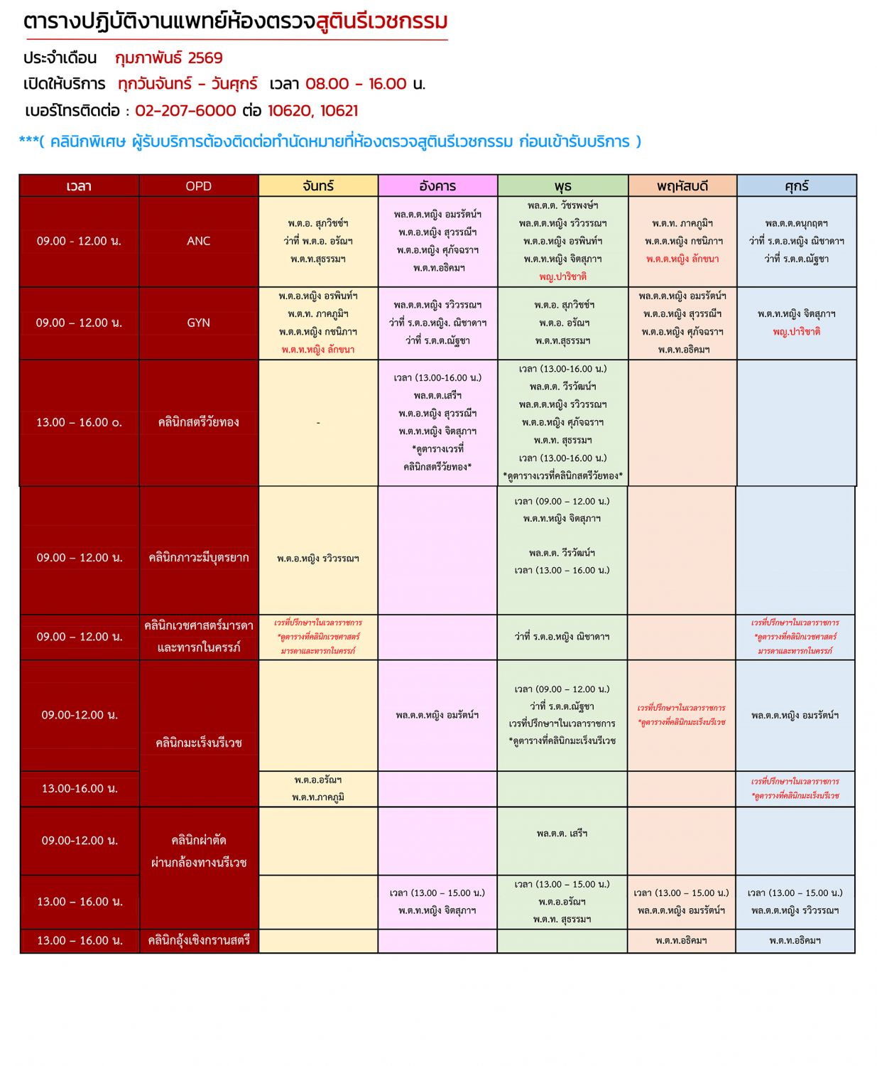 ตารางแพทย์ OPD