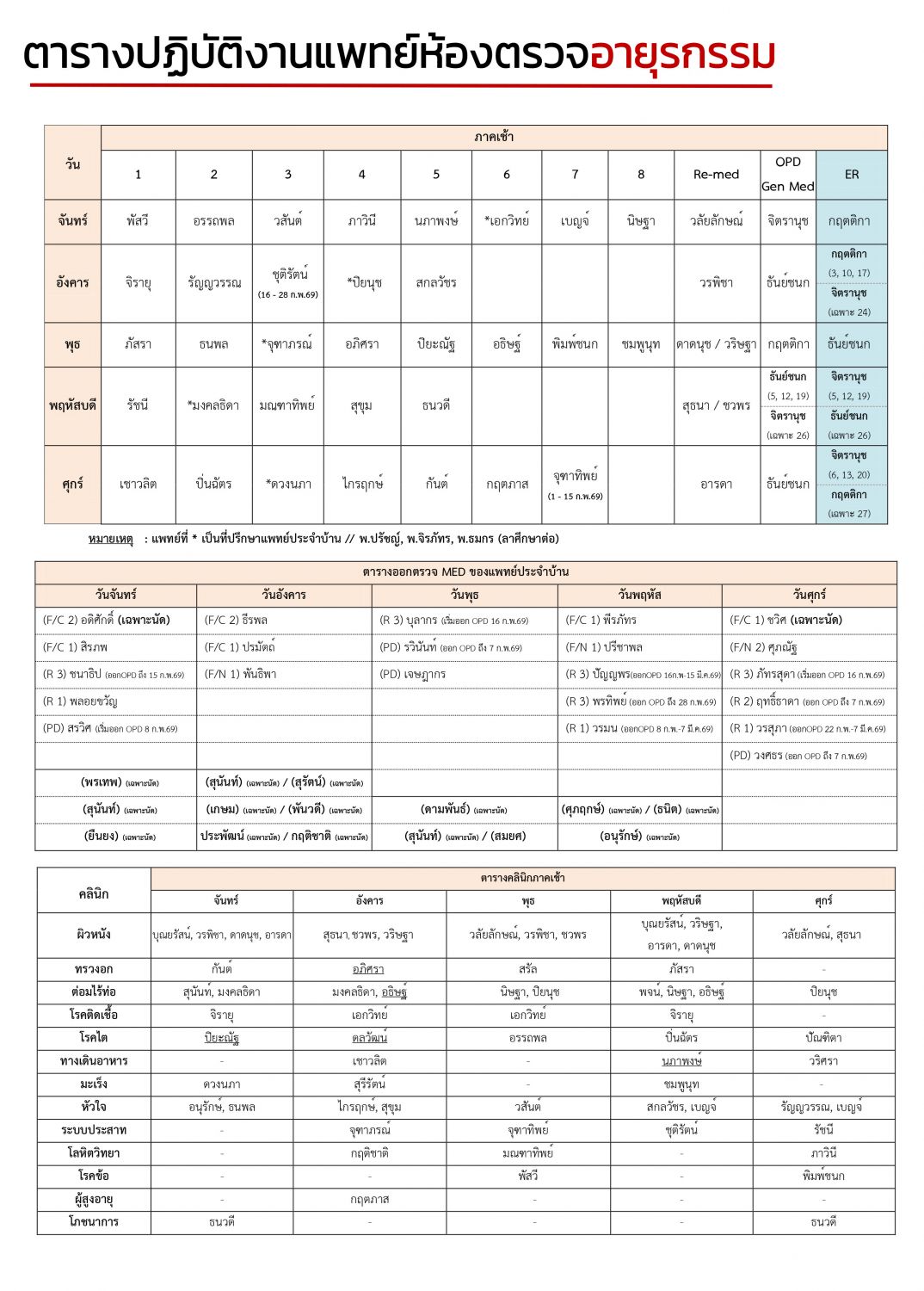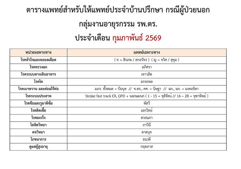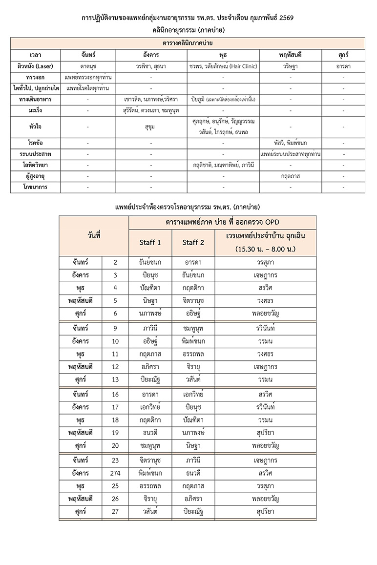 ตารางแพทย์ OPD