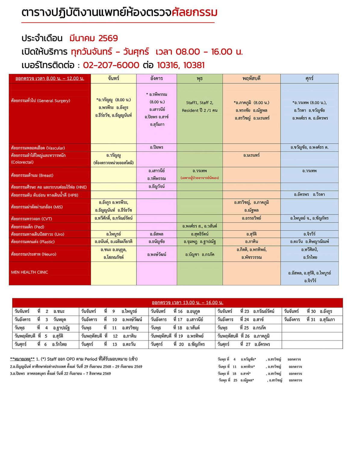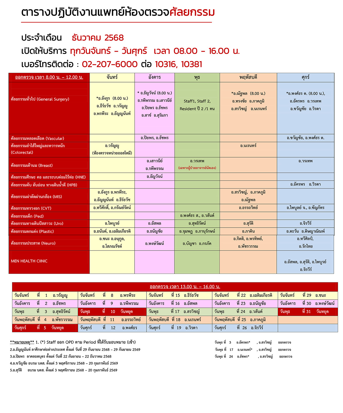 ตารางแพทย์ OPD