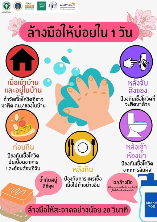 ล้างมือให้บ่อยใน 1 วัน ล้างมือให้สะอาดอย่างน้อย 20 วินาที