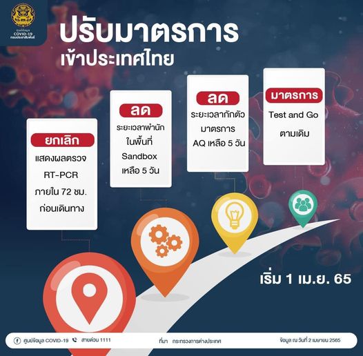 ปรับมาตรการเข้าประเทศไทย เริ่ม 1 เมษายน พ.ศ. 2565