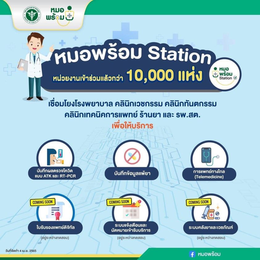 หมอพร้อมมีหน่วยบริการกว่า 10,000 แห่ง เข้าร่วม "หมอพร้อม Station" เพื่อให้บริการประชาชน