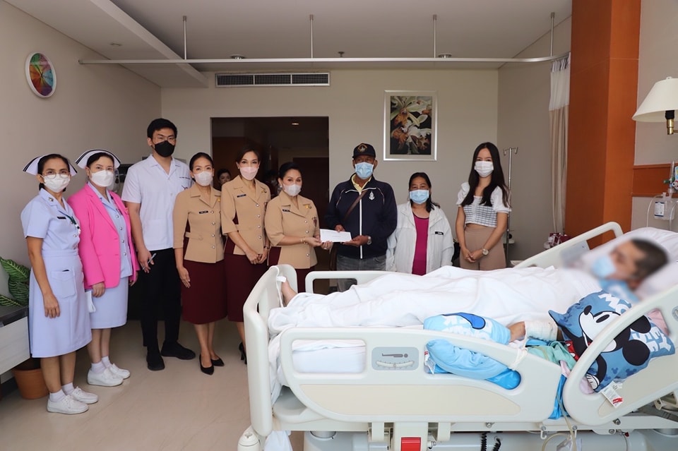 โดยพูดคุยซักถามอาการบาดเจ็บจากผู้ป่วย และญาติ พร้อมมอบเงินจำนวนหนึ่งให้ไว้ใช้จ่าย เพื่อสร้างขวัญกำลังใจให้ครอบครัว