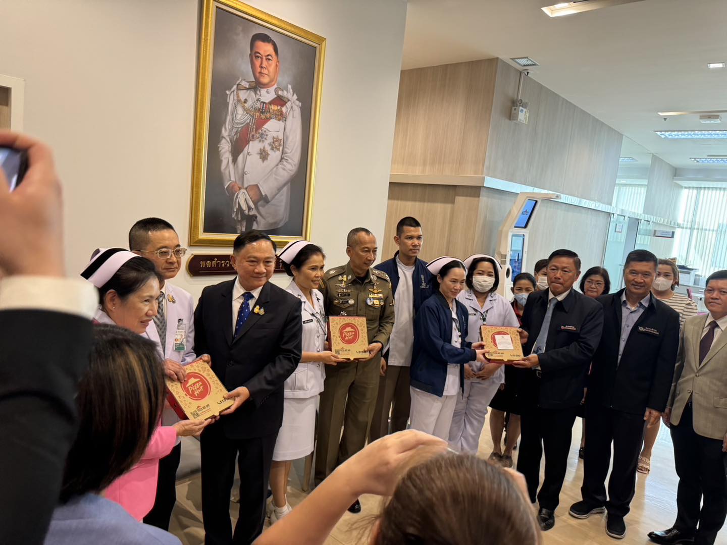 นอกจากมอบพิซซ่า และน้ำอัดลม ให้นายแพทย์ใหญ่ โรงพยาบาลตำรวจแล้ว พล.ต.อ.วินัย พร้อมคณะ ยังนำไปมอบให้บุคลากรที่ห้องจิตตาลาน และห้องรุจิรวงศ์ ด้วย