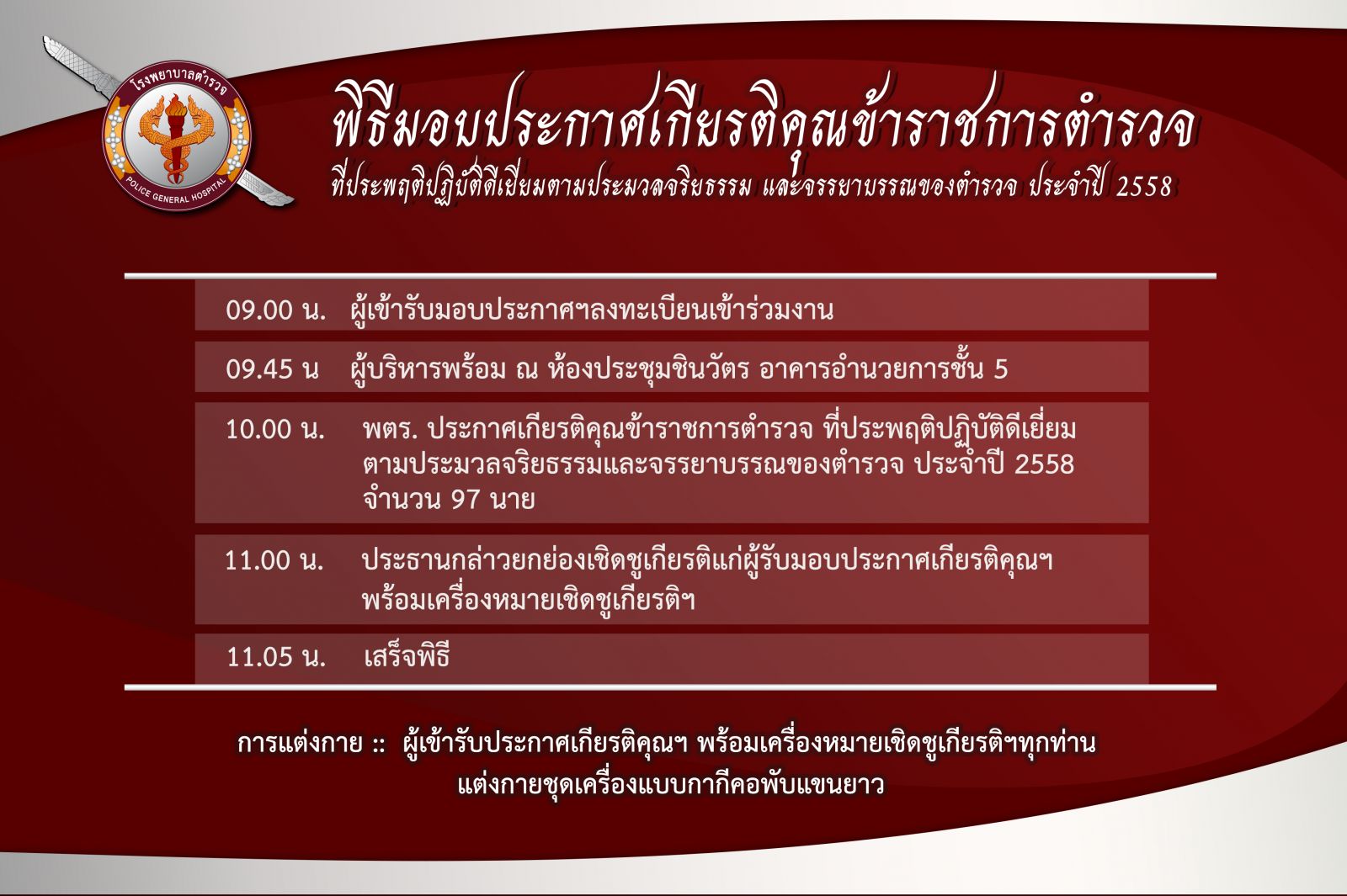 พิธีมอบประกาศเกียรติคุณข้าราชการตำรวจ ที่ประพฤติปฏิบัติดีเยี่ยมตามประมวลจริยธรรม และจรรยาบรรณของตำรวจ ประจำปี 2558