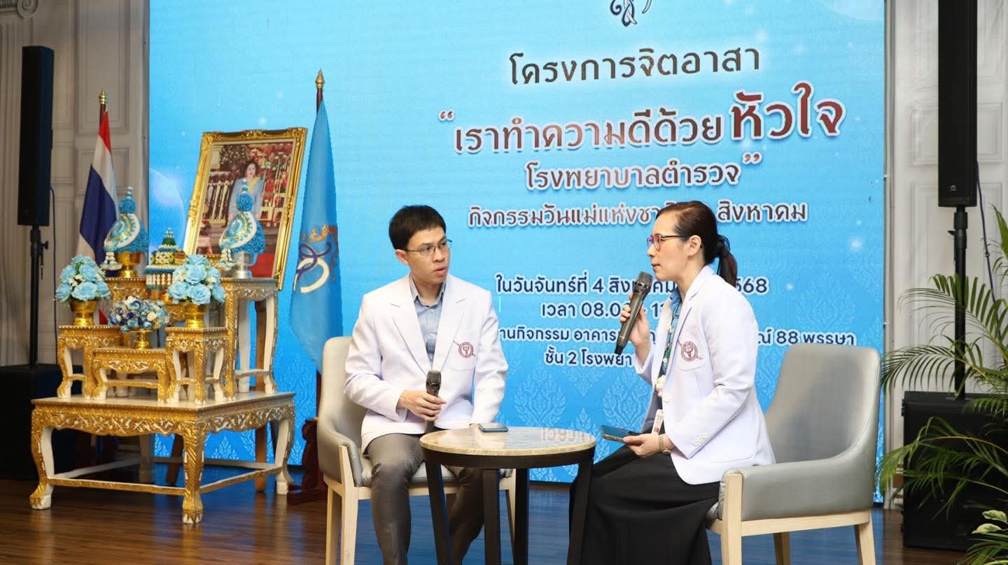 วันจันทร์ที่ 4 สิงหาคม 2568 ณ ลานกิจกรรมชั้น 2 อาคารมหาภูมิพลราชานุสรณ์ 88 พรรษา โรงพยาบาลตำรวจ พล.ต.ท. ทวีศิลป์ เวชวิทารณ์ นายแพทย์ใหญ่ (สบ 8)มอบหมายให้ พล.ต.ต.หญิง พันวดี รัตนสุมาวงศ์ นายแพทย์ (สบ 7) โรงพยาบาลตำรวจ เปิดโครงการจิตอาสา “เราทำความดีด้วยหัวใจ” โรงพยาบาลตำรวจ เนื่องในโอกาสมหามงคลเฉลิมพระชนมพรรษา 12 สิงหาคม สมเด็จพระนางเจ้าสิริกิติ์พระบรมราชินีนาถ พระบรมราชชนนีพันปีหลวง ที่จัดขึ้นโดย คณะทำงานการขับเคลื่อนโครงการจิตอาสา “เราทำความดีด้วยหัวใจ” โรงพยาบาลตำรวจ ร่วมกับกลุ่มงานสูตินรีเวชกรรม โรงพยาบาลตำรวจ