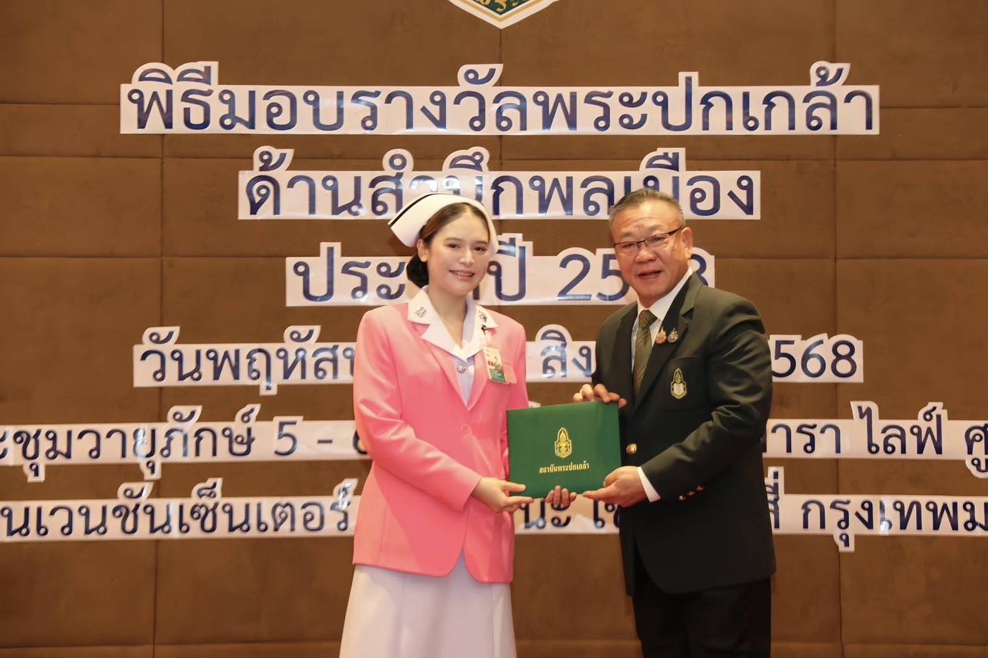 วันพฤหัสบดีที่ 21 สิงหาคม 2568 ณห้องวายุภักษ์ 5 ชั้น 5 โรงแรมเซ็นทารา ไลฟ์ ศูนย์ราชการและคอนเวนชันเซ็นเตอร์ สถาบันพระปกเกล้า โดยสำนักส่งเสริมการเมืองภาคพลเมือง นายวิทวัส ชัยภาคภูมิ เลขาธิการสถาบันพระปกเกล้า มอบโล่รางวัล "รางวัลพระปกเกล้า ด้านสำนึกพลเมือง" ให้ผู้ที่เป็นบุคคลต้นแบบทำความดีให้กับประเทศชาติและสังคม