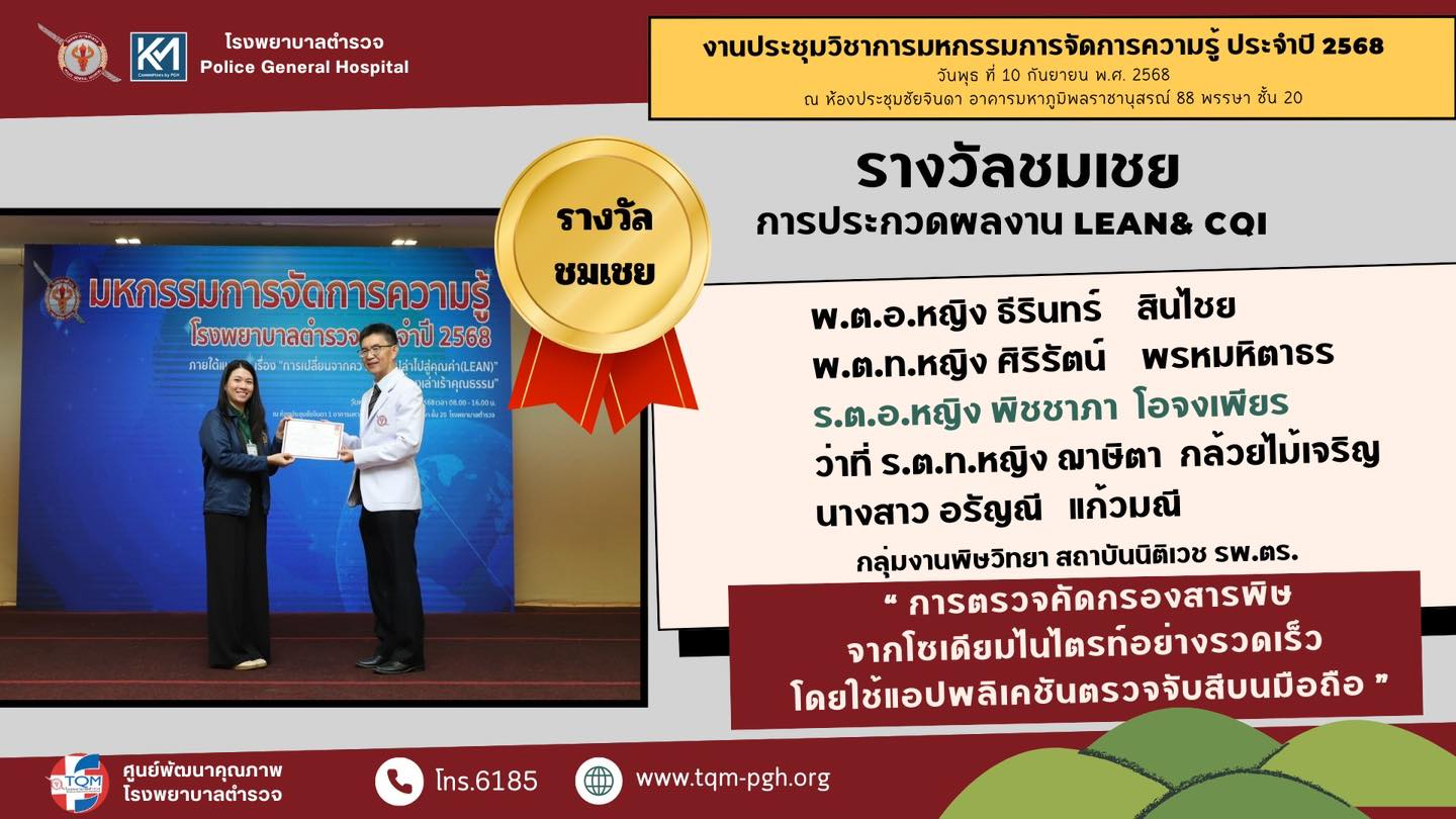 โดยผลการประกวดผลงานประเภท Lean & CQI