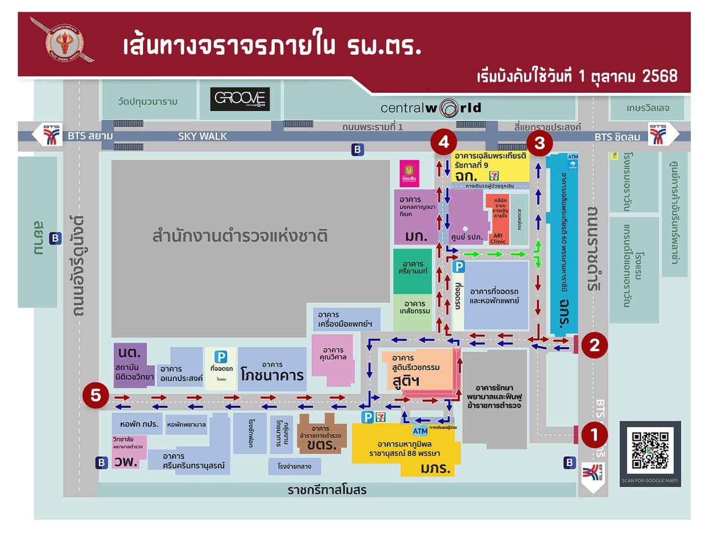โรงพยาบาลตำรวจ ประชาสัมพันธ์การปรับเปลี่ยนเส้นทางจราจรภายในโรงพยาบาลตำรวจ