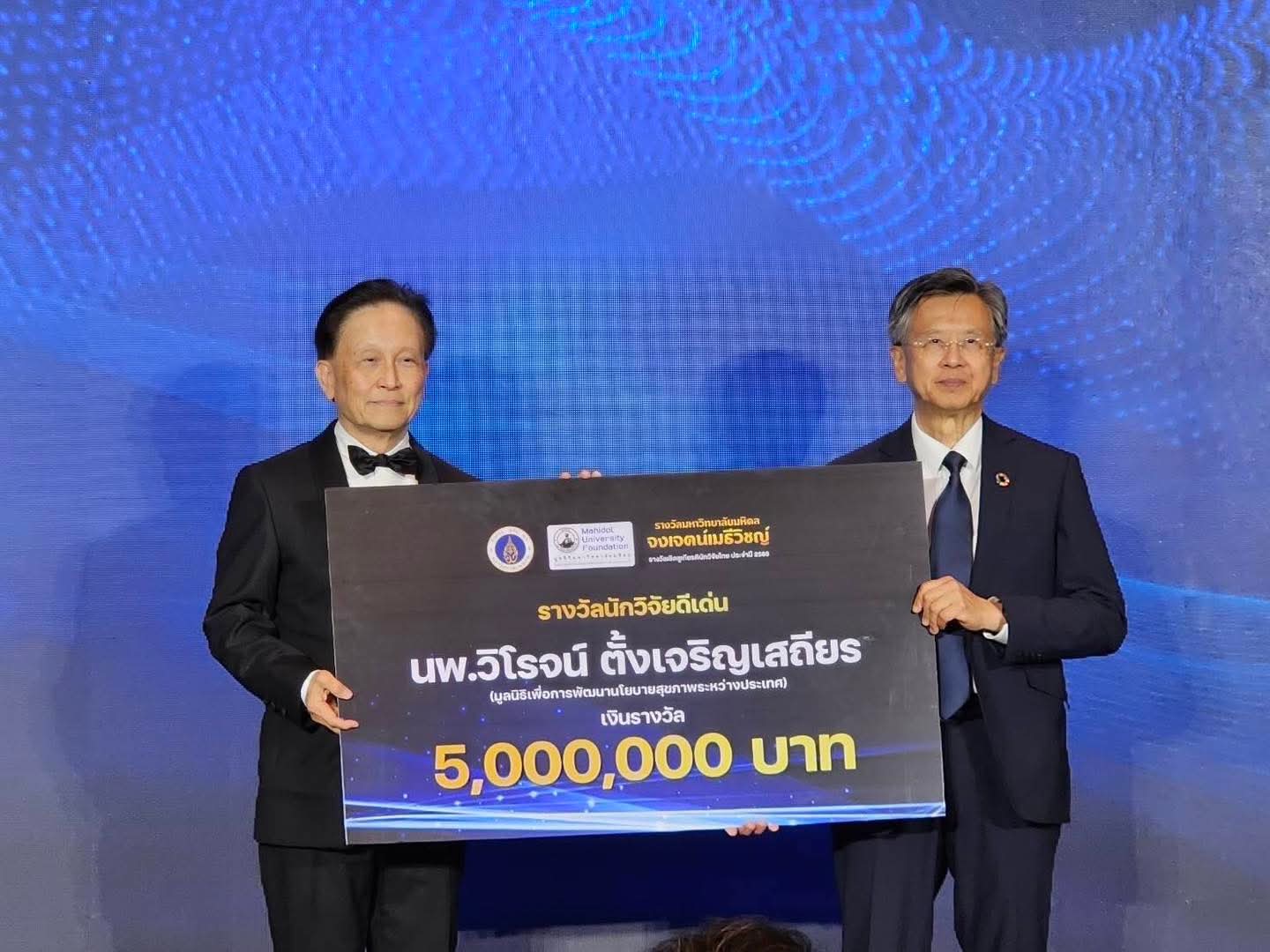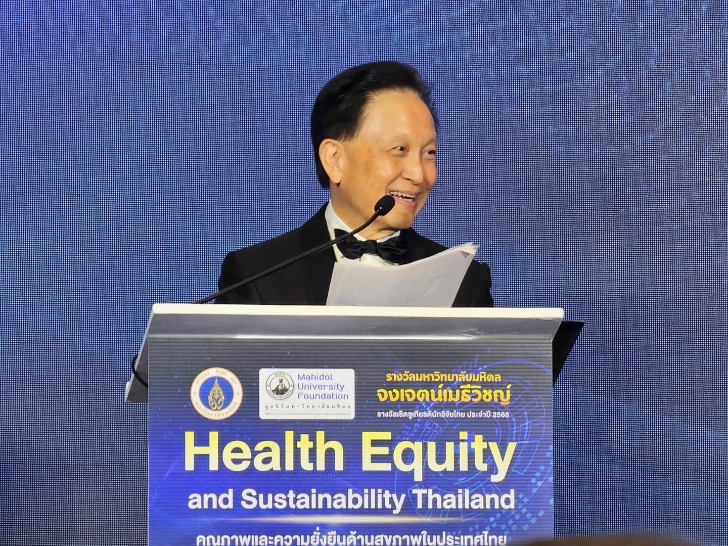 วันศุกร์ที่ 26 กันยายน 2568 ณ ห้องท่าจีน โรงแรมแมนดาริน โอเรียนเต็ล กรุงเทพ พล.ต.อ.นายแพทย์ จงเจตน์ อาวเจนพงษ์ อดีตนายกสมาคมศิษย์เก่ามหาวิทยาลัยมหิดล ในพระบรมราชูปถัมภ์ ปาฐกถาพิเศษ พร้อมมอบช่อดอกไม้ และ มอบรางวัล “มหาวิทยาลัยมหิดล จงเจตน์เมธีวิชญ์” ประจำปี 2568 ซึ่งเป็นการมอบรางวัลครั้งแรกให้แก่ นพ.วิโรจน์ ตั้งเจริญเสถียร ที่ได้รับรางวัลนักวิจัยดีเด่น พร้อมเงินรางวัล 5 ล้านบาท