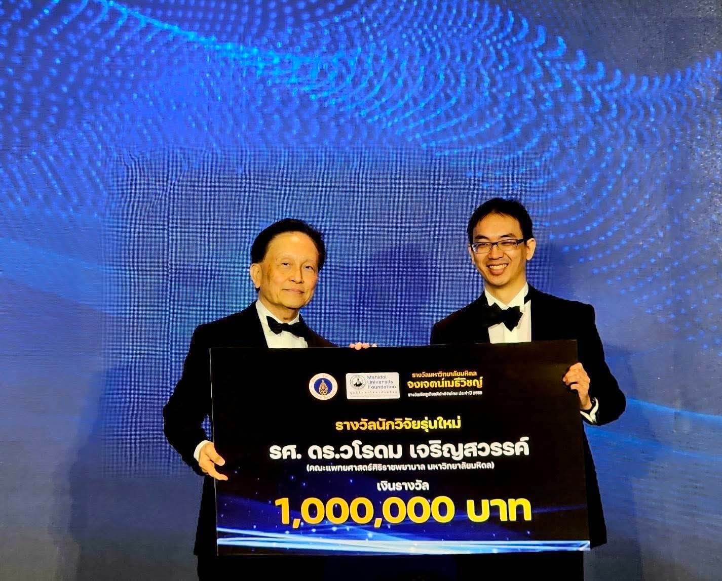 และ รศ. ดร.วโรดม เจริญสวรรค์ รางวัลนักวิจัยรุ่นใหม่ พร้อมเงินรางวัล 1 ล้านบาท