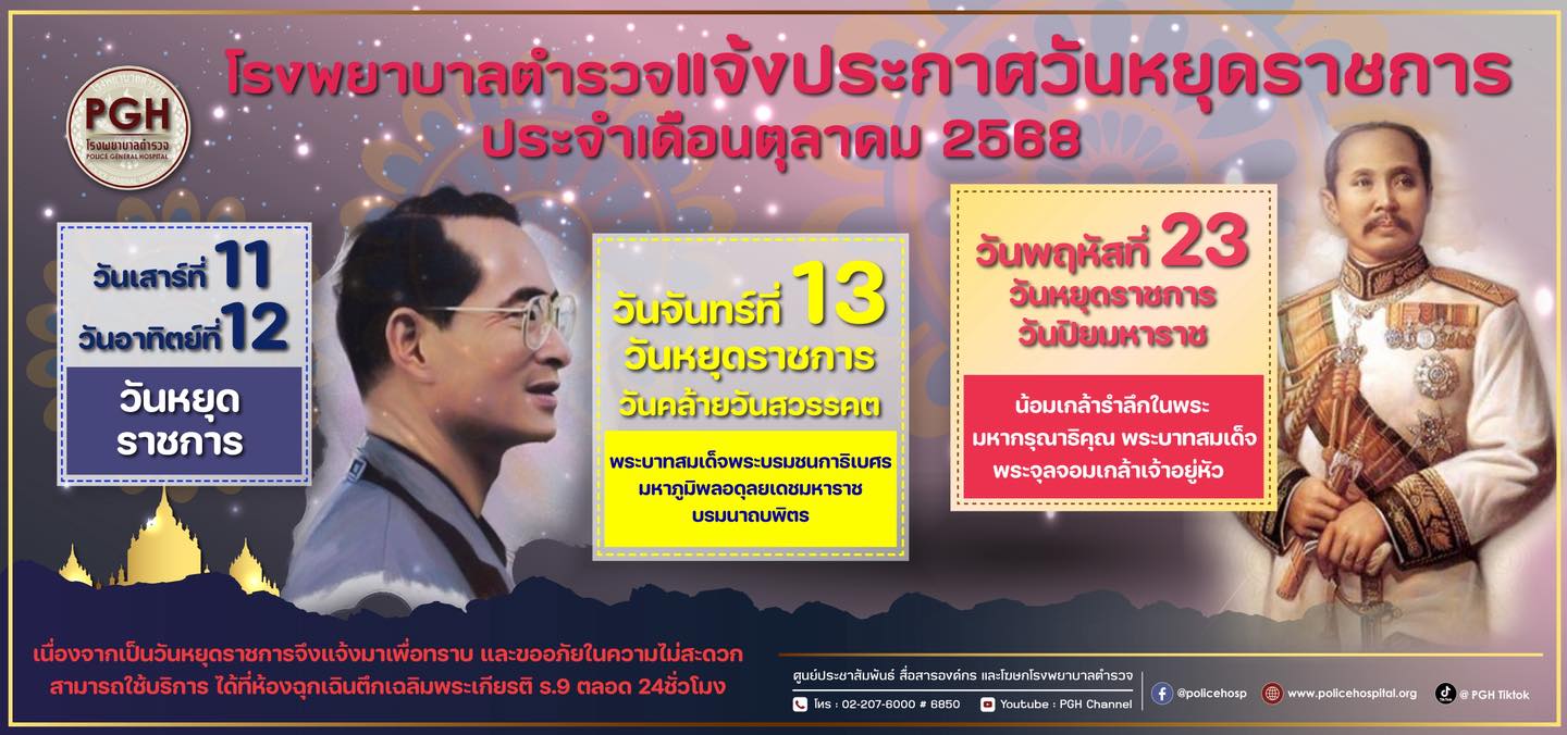 โรงพยาบาลตำรวจประกาศวันหยุดราชการประจำเดือนตุลาคม 2568