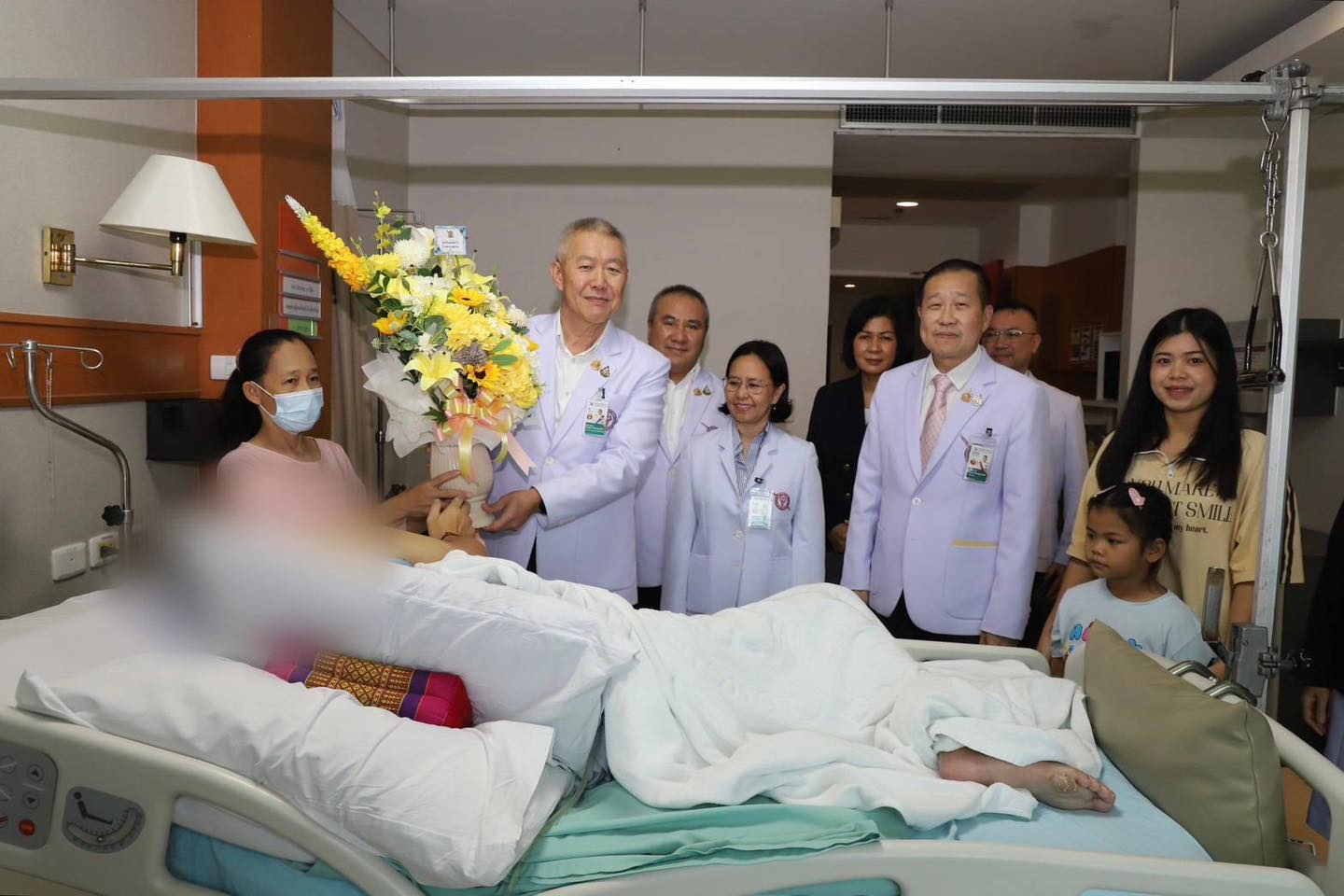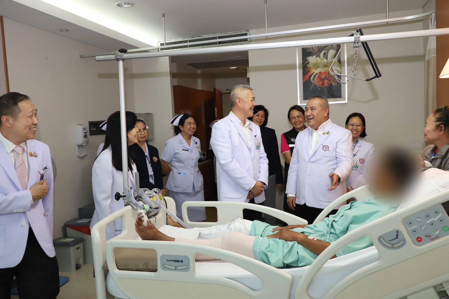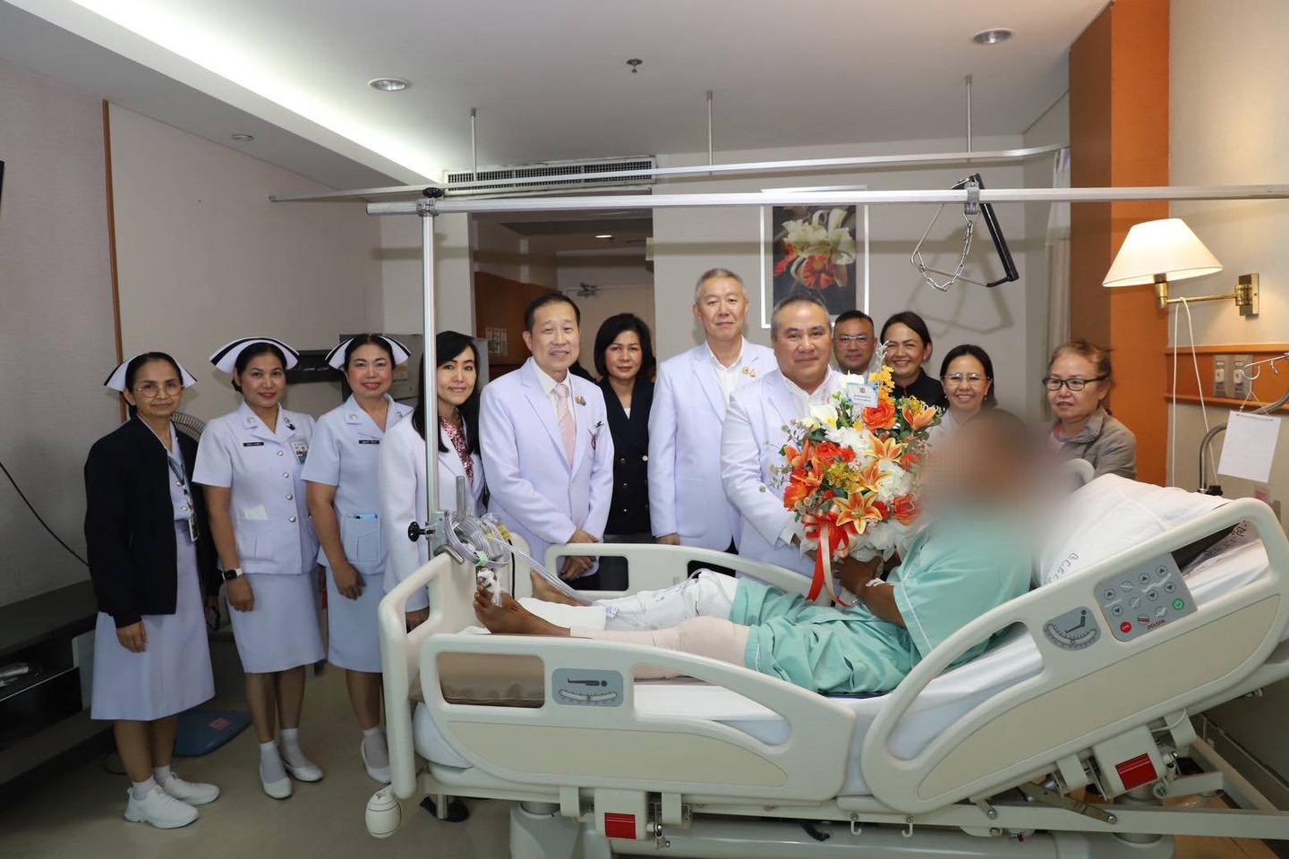 โดยคณะผู้บริหารสอบถามอาการบาดเจ็บจากทีมแพทย์ พร้อมให้คำแนะนำเกี่ยวกับการดูแลรักษาและฟื้นฟูสภาพร่างกาย อีกทั้งมอบดอกไม้และสิ่งของแสดงความห่วงใย