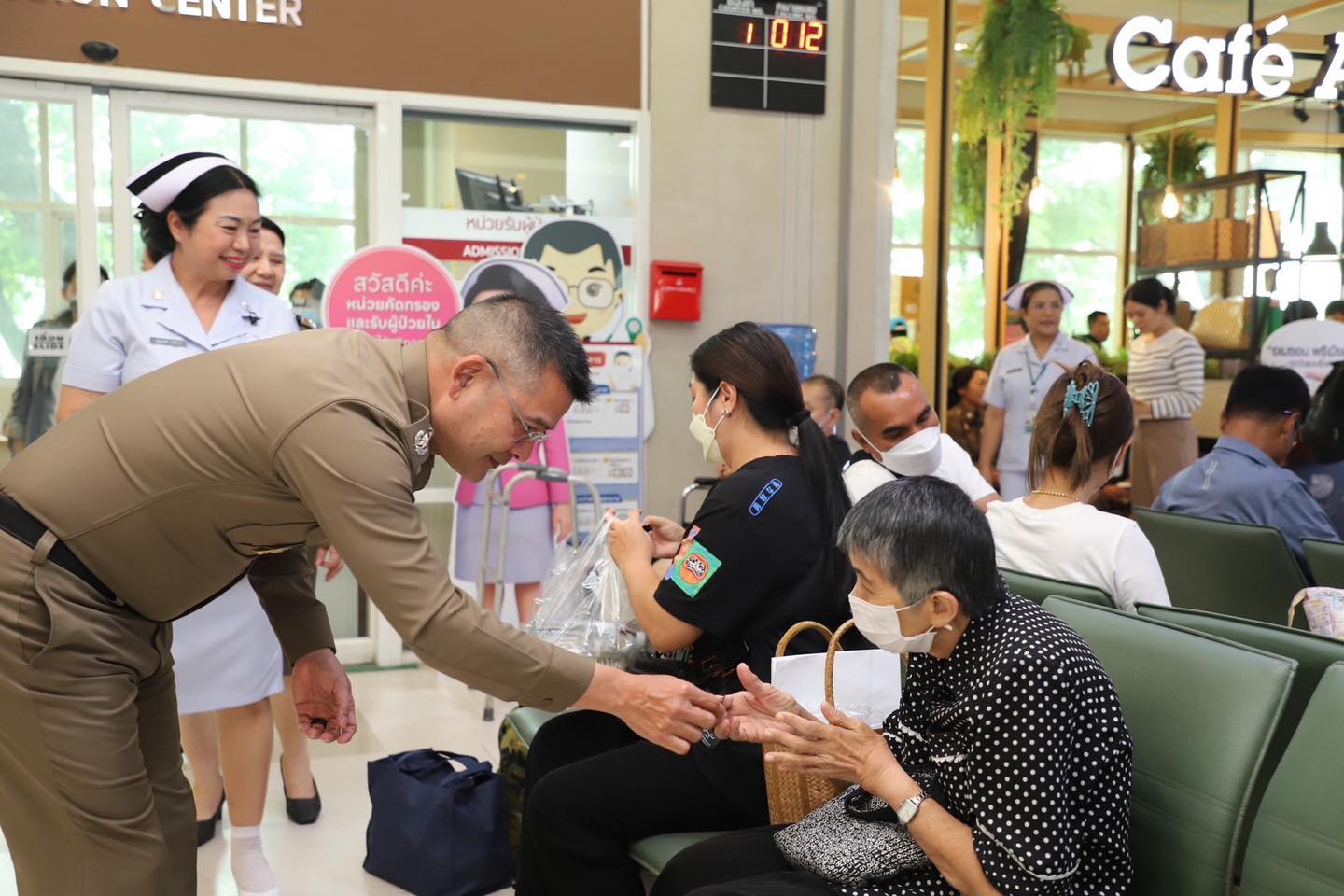 วันจันทร์ที่ 27 ตุลาคม 2568 ณ ลานกิจกรรม ชั้น 2 อาคารมหาภูมิพลราชานุสรณ์ 88 พรรษา โรงพยาบาลตำรวจ พล.ต.ท.อนุชา รมยะนันทน์ ผู้ช่วยผู้บัญชาการตำรวจแห่งชาติ ให้เกียรติแจกโบว์สีดำเพื่อแสดงความอาลัยและน้อมรำลึกถึงพระมหากรุณาธิคุณของสมเด็จพระนางเจ้าสิริกิติ์ พระบรมราชินีนาถ พระบรมราชชนนีพันปีหลวง แก่ประชาชนผู้มาใช้บริการโรงพยาบาลตำรวจ