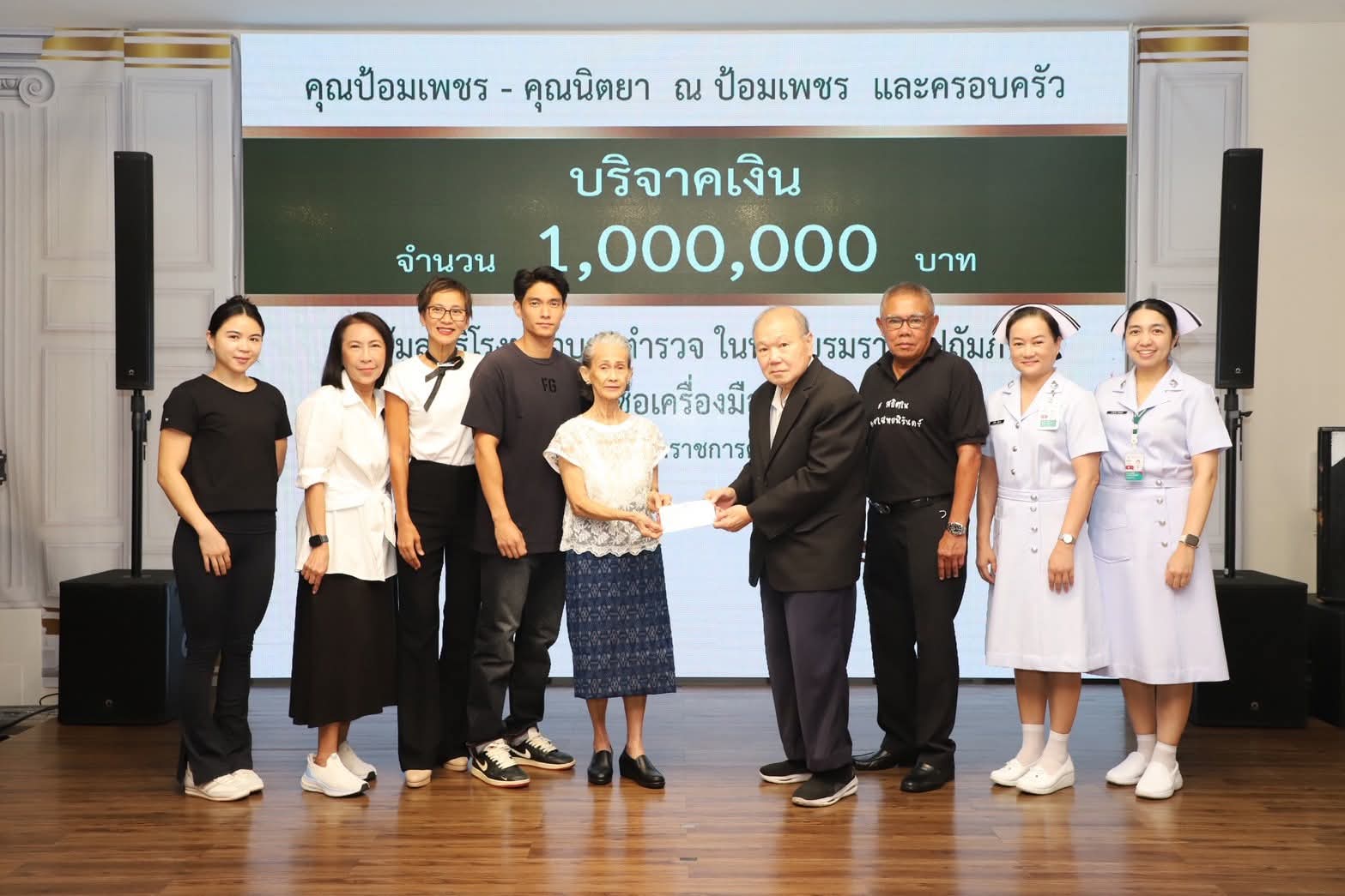 วันจันทร์ที่ 17 พฤศจิกายน 2568 ณ ลานกิจกรรม ชั้น 2 อาคารมหาภูมิพลราชานุสรณ์ 88 พรรษา โรงพยาบาลตำรวจ พล.ต.ต.ทรงชัย สิมะโรจน์ เหรัญญิกมูลนิธิ โรงพยาบาลตำรวจ ในพระบรมราชินูปถัมภ์ รับมอบเงินจำนวน 1,000,000 บาท จาก คุณป้อมเพชร - คุณนิตยา ณ ป้อมเพชร และครอบครัว