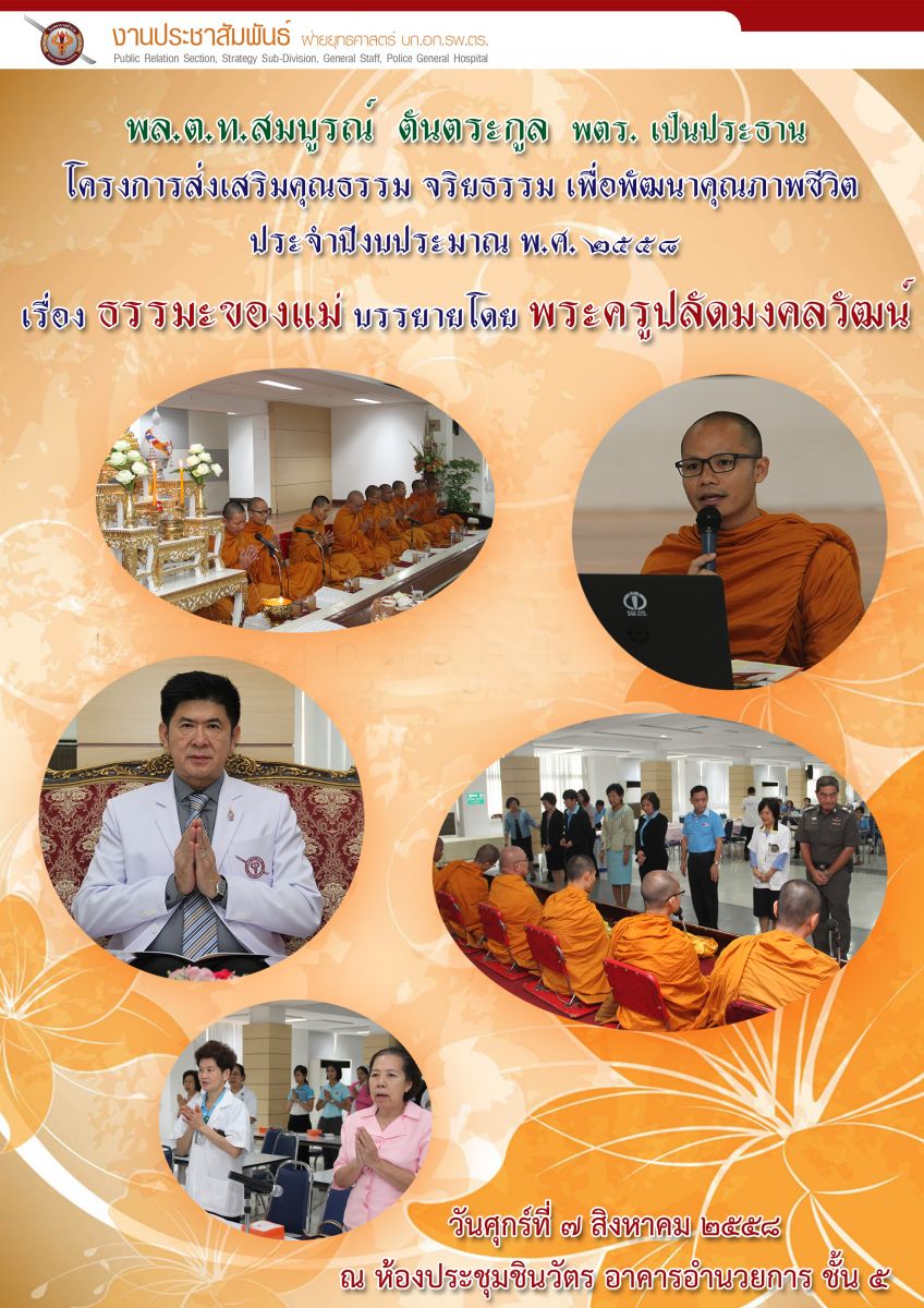 พล.ต.ท.สมบูรณ์ ตันตระกูล พตร. ประธานโครงการส่งเสริมคุณธรรม จริยธรรม เพื่อพัฒนาคุณภาพชีวิต ประจำปีงบประมาณ 2558